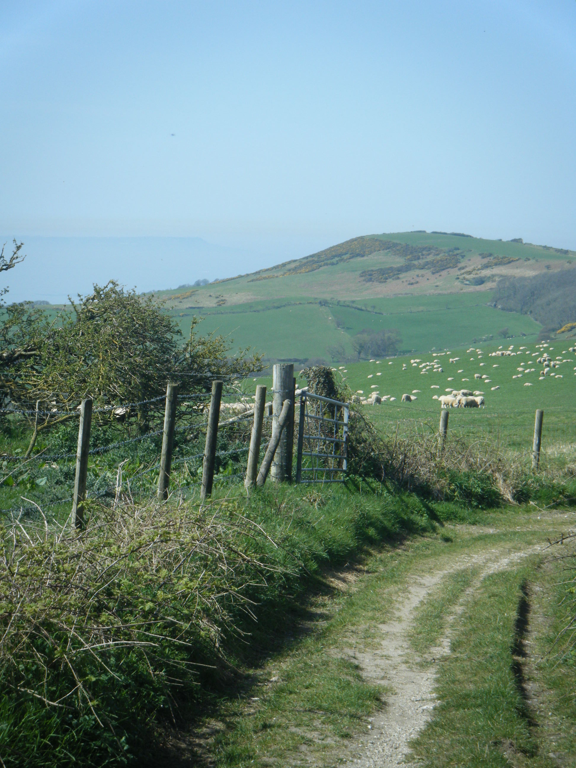I look behind. Nothing. Had I been in the other country, I might have anticipated a large lizard. I’m not in France. I’m on top of the Jurassic coastline where hawks and pterodactyls are floating dreamlike on ancient thermals over sheep-ridden downs between the folly and the endless sea. Here roamed dinosaurs leaving fossilised footprints and other Anning-l