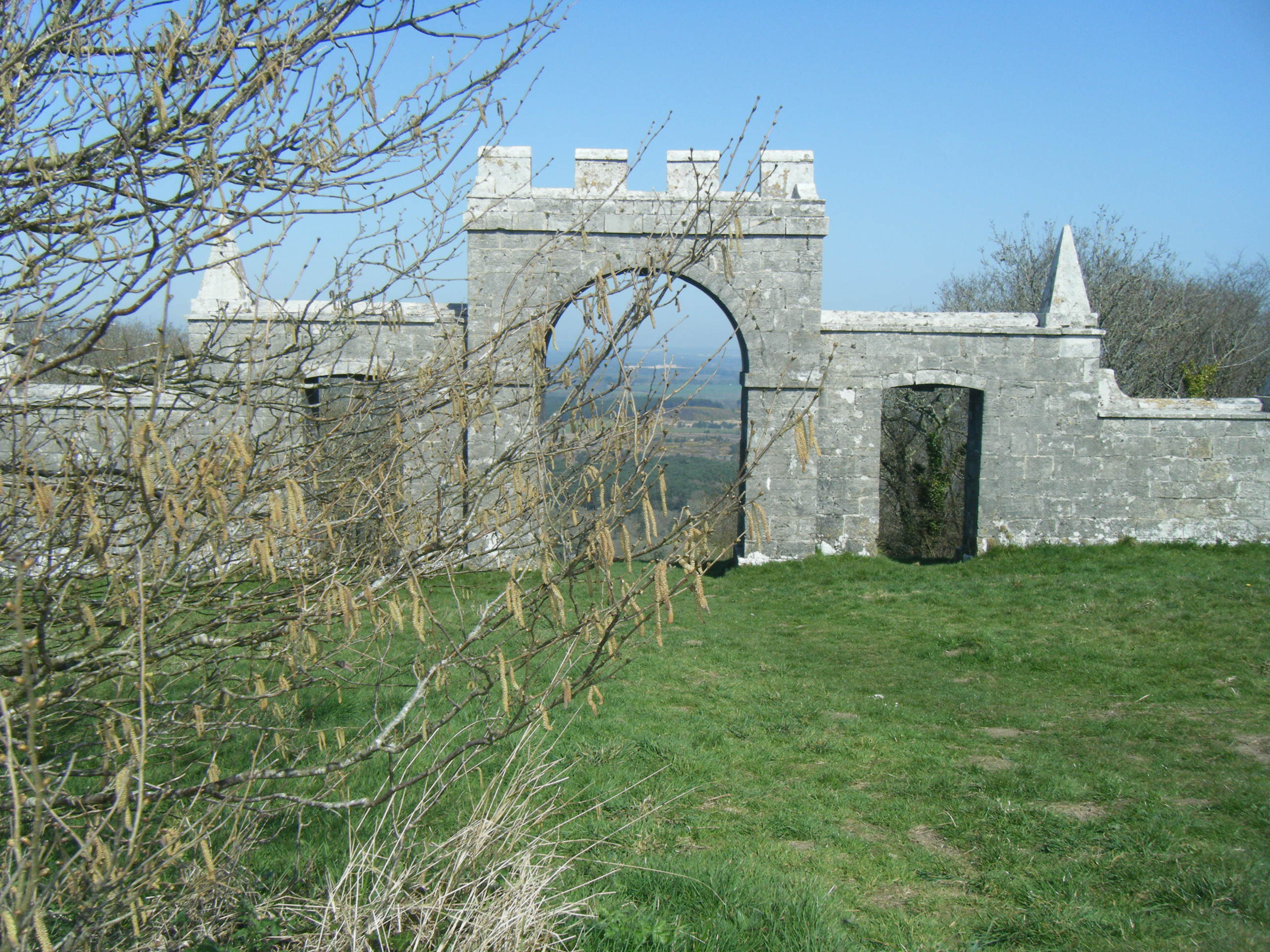Creech Folly, also known less enigmatically as Grange Arch, was constructed in 1746. In some ways it looks newer. Two hundred and something years of dirt and age are not immediately obvious, although other bygone remnants may be present: earlier, I tried to perch in a recess set in the main arch. It looks like the kind of stone seating area that might have been kindly and conveniently placed for those that have trudged up the incline to escape the pounding of Bindon Hill firing range. But, as I sit down, an older noise, one of the scuttling variety, sends me jumping back into the Purbeck air before body and folly have a chance to know each other in a physical sense.