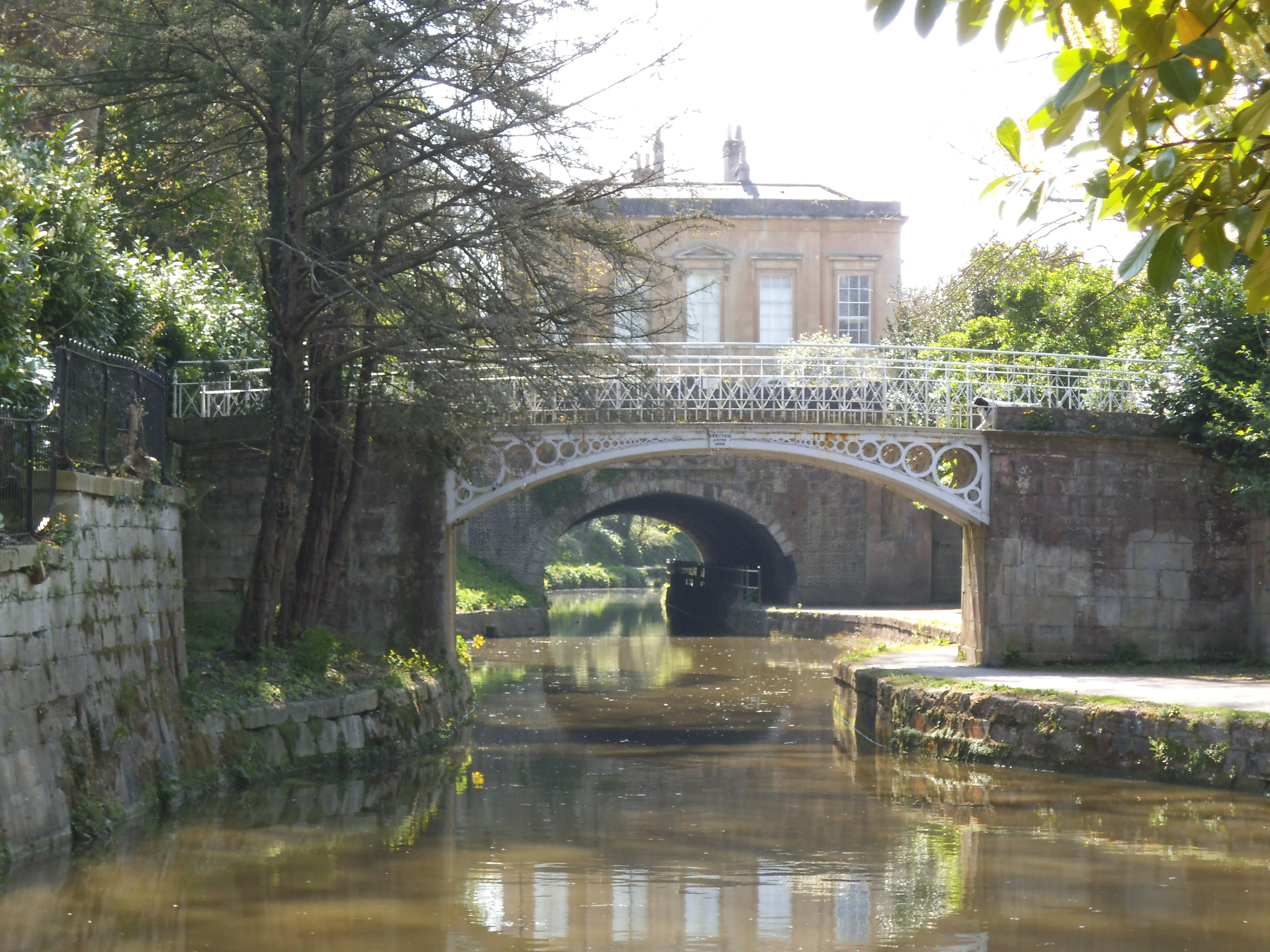 Peter has been up to the Royal United Hospital this morning for the first of his twice weekly treatments. He tells me a lot about his life including where he lived previously – Clapham and Dorset – and why he’ll be moving again shortly: second time round fatherhood has produced an unanticipated son who needs to be schooled in Warminster for reasons as unexplained as Peter’s frequent visits to the Royal. He tells me a lot of other stuff too: Minerva’s temple was located here for the Bath Historical Pageant which, a handy plaque confirms, ran from 19 – 24 July in 1909. It’s quite a wrench to leave Peter: we’d got along so well on a number of levels but I had previously unseen parts of the canal to cover and anyway, his dog was bored.