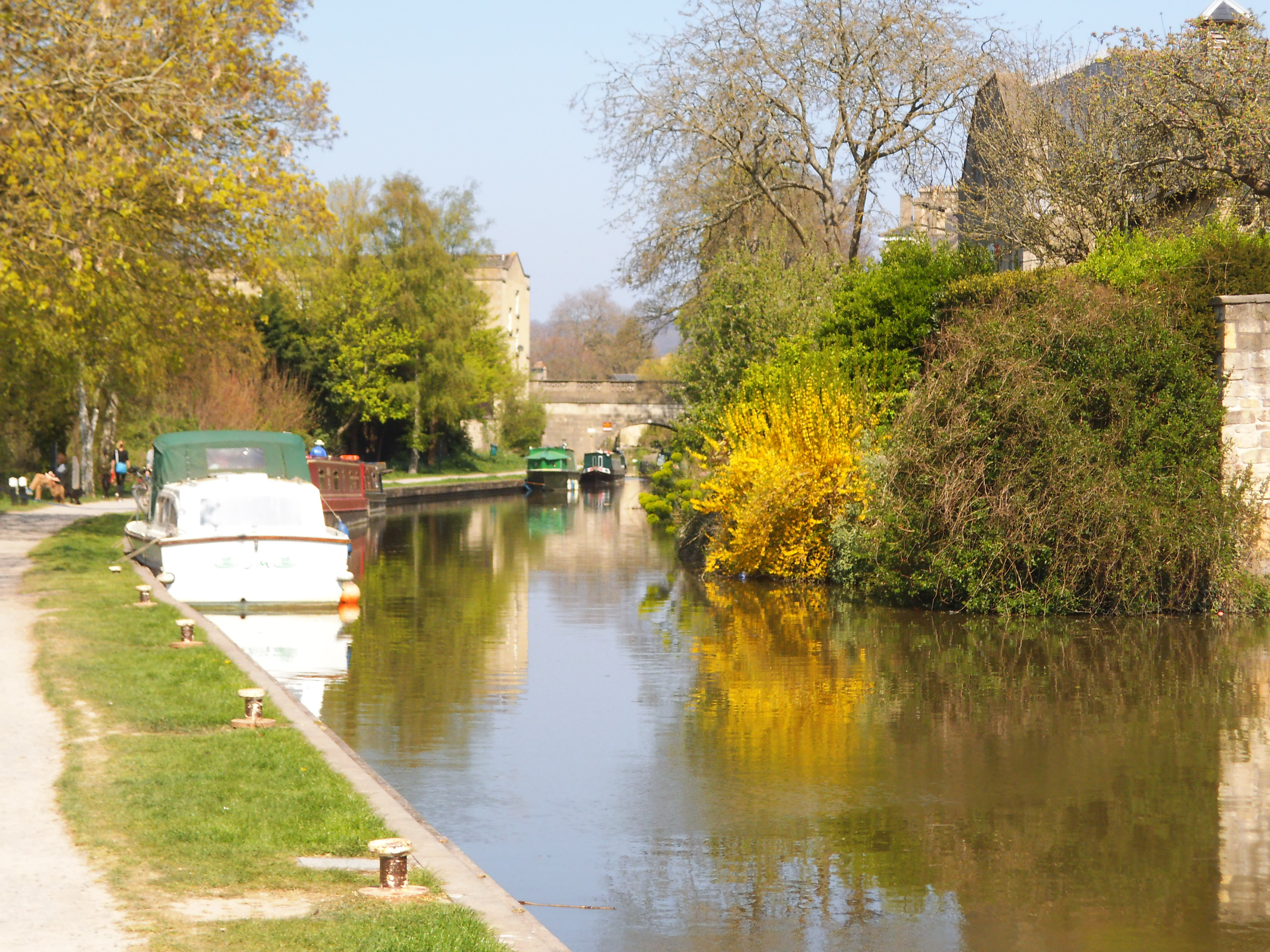 The April weather continues to be stunning. Folk are foreseeing wall to wall sunshine for the next three months at least but I’m due back at work on Tuesday. On Sunday evening, I make a last minute plan to drive up to Bath the following morning and enjoy the Kennet and Avon in Sydney Gardens. It won’t be a trek – more of a relaxing in-depth look at the canal in the city. On the day, however, it seems that events are conspiring against me: the A36 at Claverton Down is shut which means that I have to crawl through Bradford on Avon with the rest of the world and approach Bath from the ‘wrong’ side of town. Sick of the inside of a Ford Fiesta, I abandon my original plan, take a sneaky left turn onto the toll road that runs through Bathampton and leave the vehicle behind The George.
