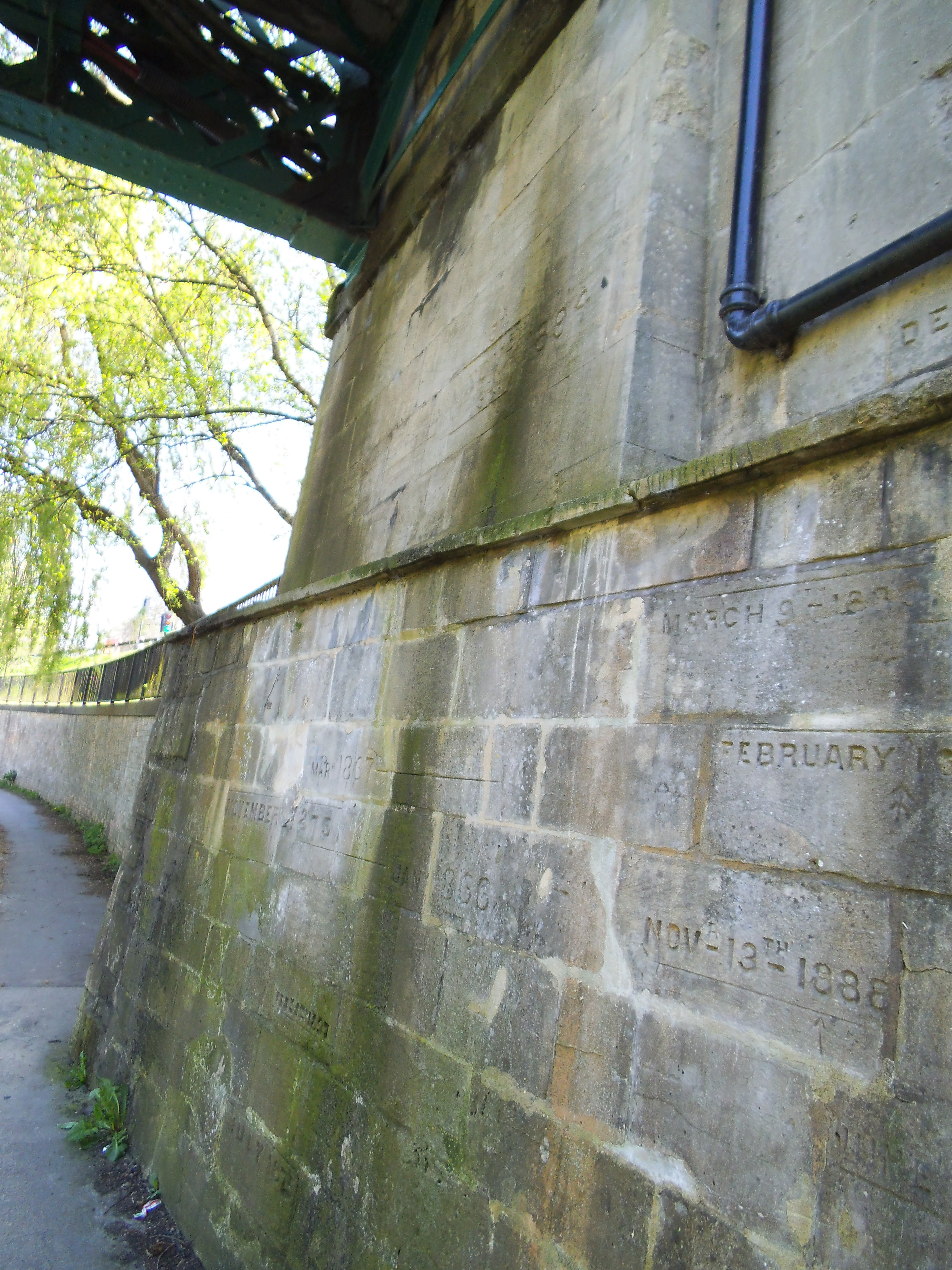 Widcombe Road Bridge used to be known as Ha’penny Bridge due to the crossing toll imposed. It’s relatively unsightly but dates and lines carved into one of the bridge’s supports attract my attention. A solitary person is wandering along the embankment towards me with his eyes glued on his mobile telephone. I ask him if the dates and lines indicate previous flood levels. This seems to be the obvious explanation but it’s difficult to believe the water could have risen so high. On the 15 November, 1894, for example, the river rose 19 feet above its normal level. That’s a lot of water. The man with the phone knows nothing other than what’s currently trending on Twitter. He’s been coming this way every lunchtime for eons and has never previously noticed the markings. When I get home, I research this area and am amazed to discover the history of Bath’s floods.