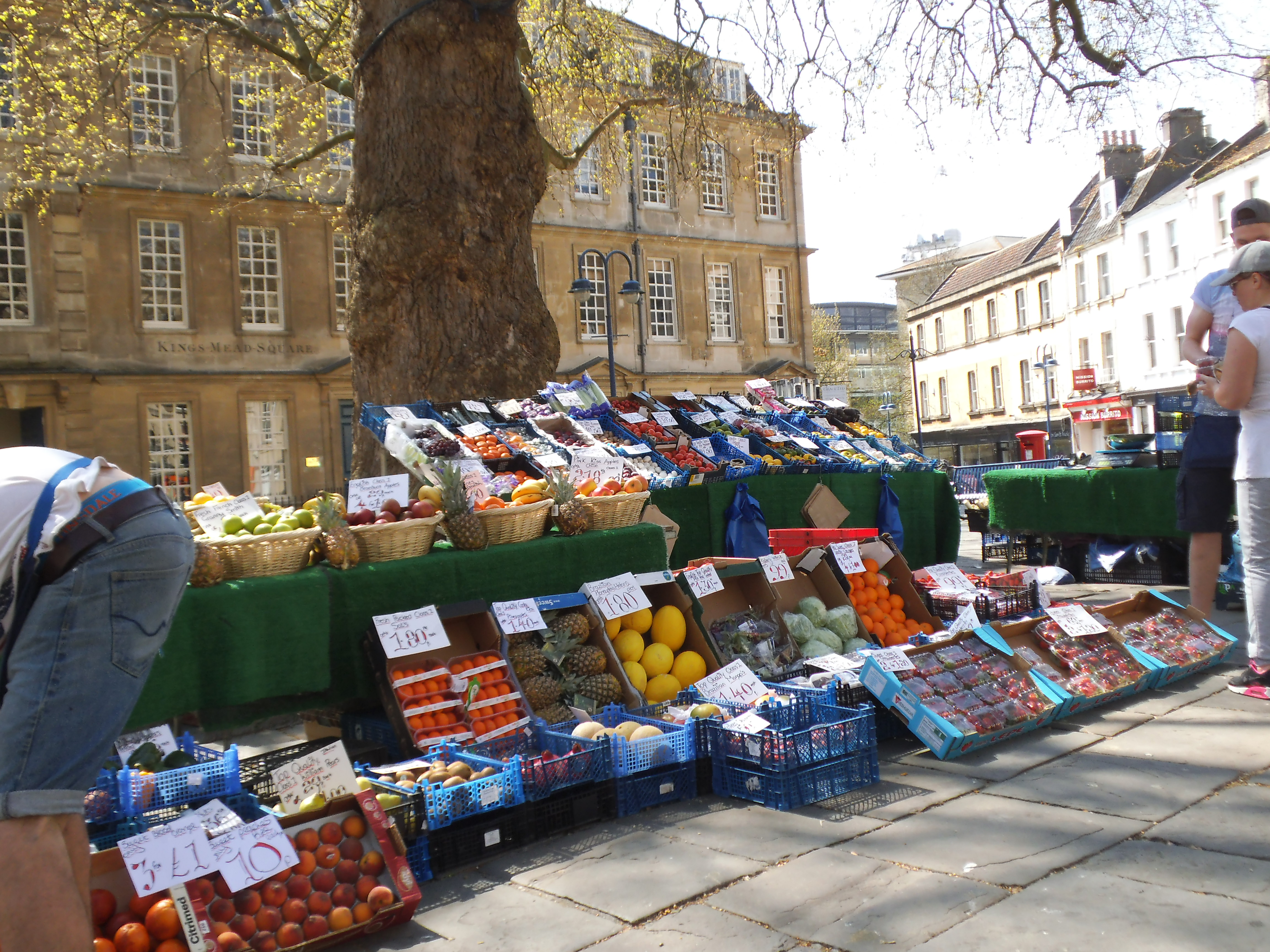 I walk on into the remnants of Bath’s industrial canal side and eventually leave the water at the Midland Road Bridge. I’m confused by the leftovers of Green Park Station which is doing its unsuccessful best to become a regenerated area of post-modernism. I once had an important boyfriend who lived in Green Park but it’s impossible to locate his place of abode if it still exists. Even harder to remember what went on there. Unplanned, I cross the city on foot and stop by a solitary fruit and vegetable stall to eat my sandwich.