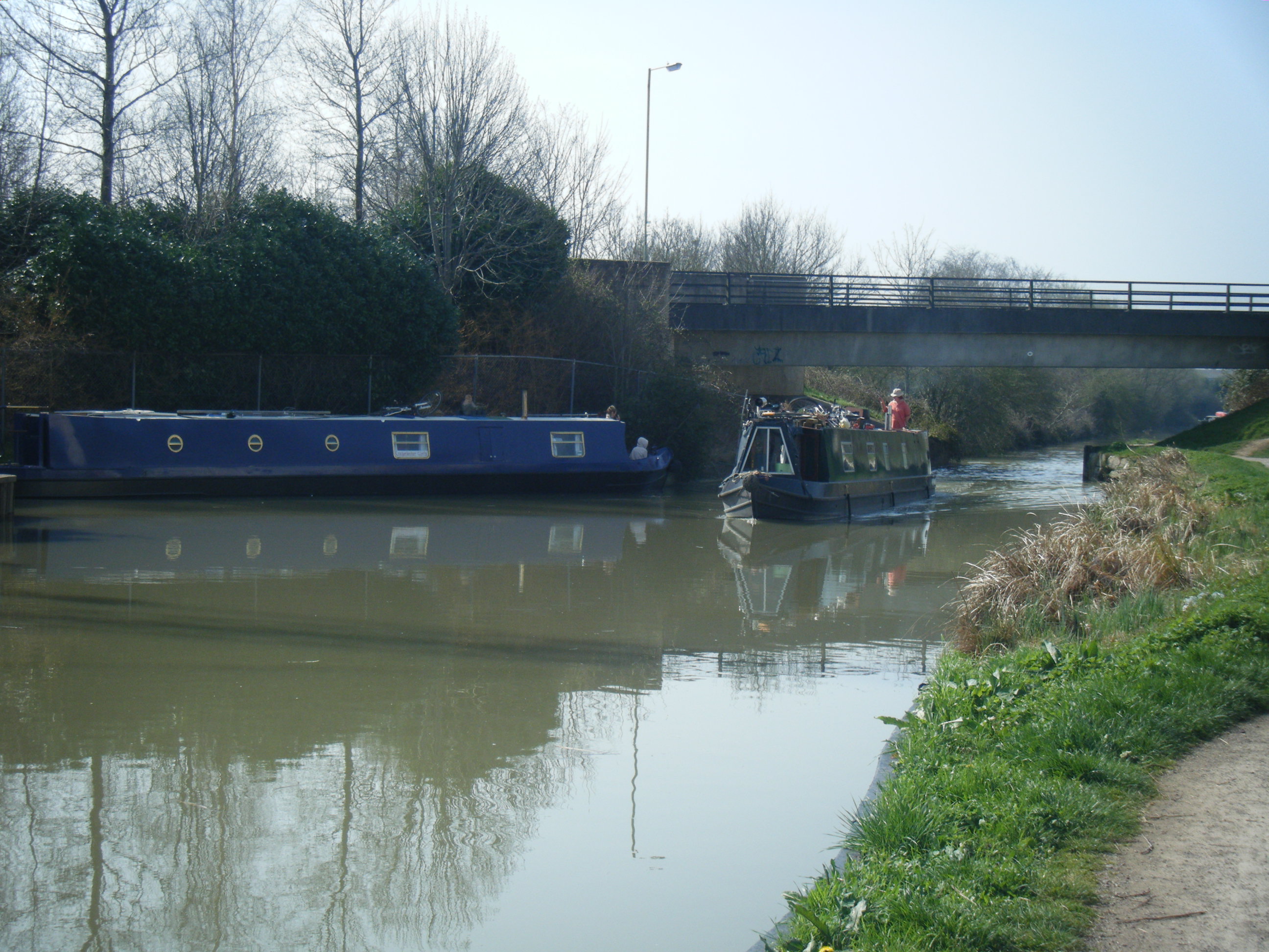 However, I have to leave the canal for a few confusing minutes to negotiate one of the troublesome roads. Trying to locate the continuation of the towpath amongst the fumes and horns of an eternal road traffic jam is an unpleasant experience but I’m soon back on track heading for the place where the River Avon joins the canal. The contrast is quite stunning and I am almost alone.