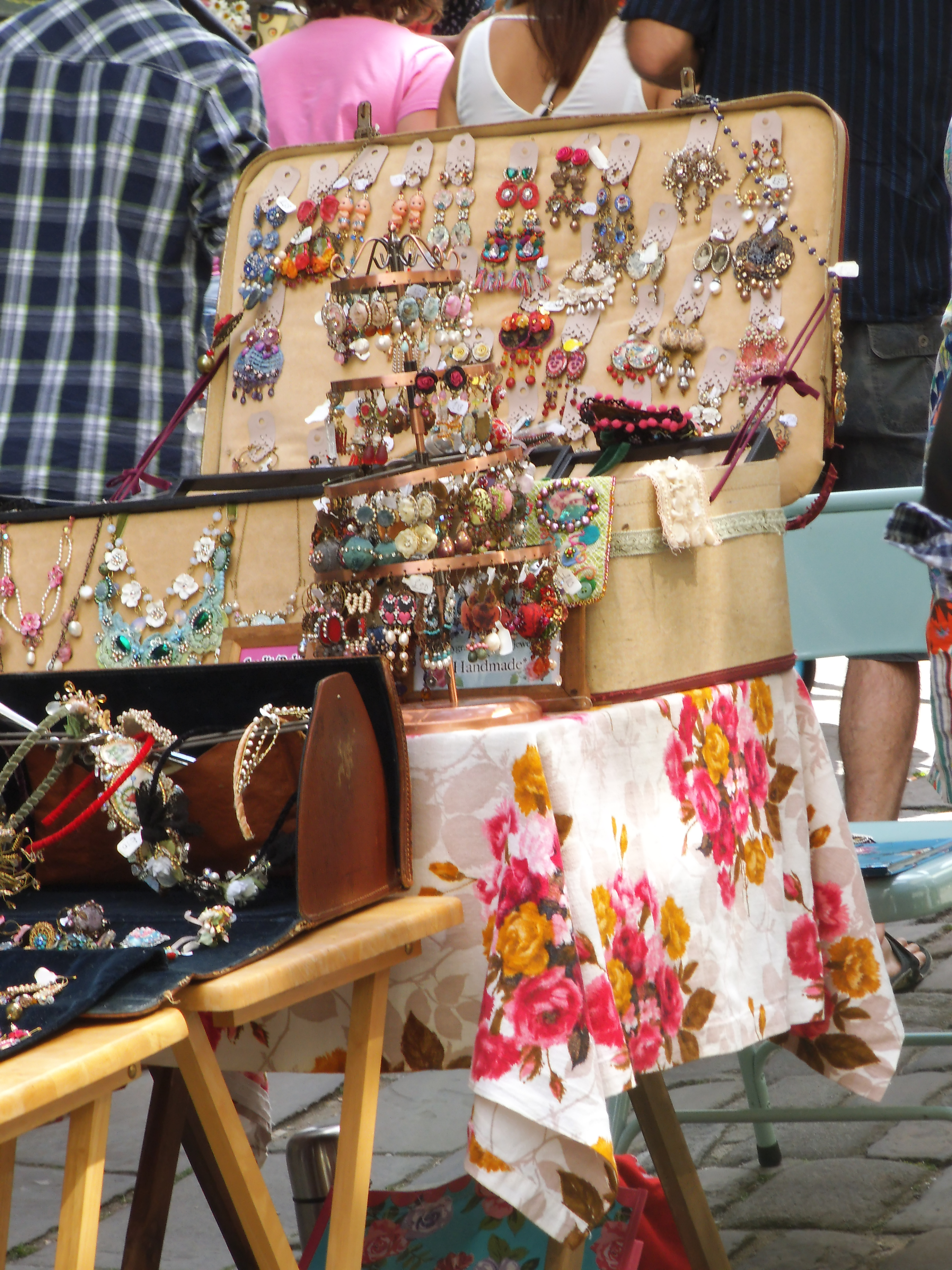 DSCF0131 We traversed all things vintage, all things edible, all things musical, all things floral, all things arty and crafty and found LilyGrace and her amazing jewellery. And we both fell in love with the same pair of earrings. Trouble was that the clasps were made from the wrong sort of metal for Mrs Adler’s delicate ears. Further, the clasps were too small for mine. When did I get so fat that even my ear-lobes are too big? These are desperate days.