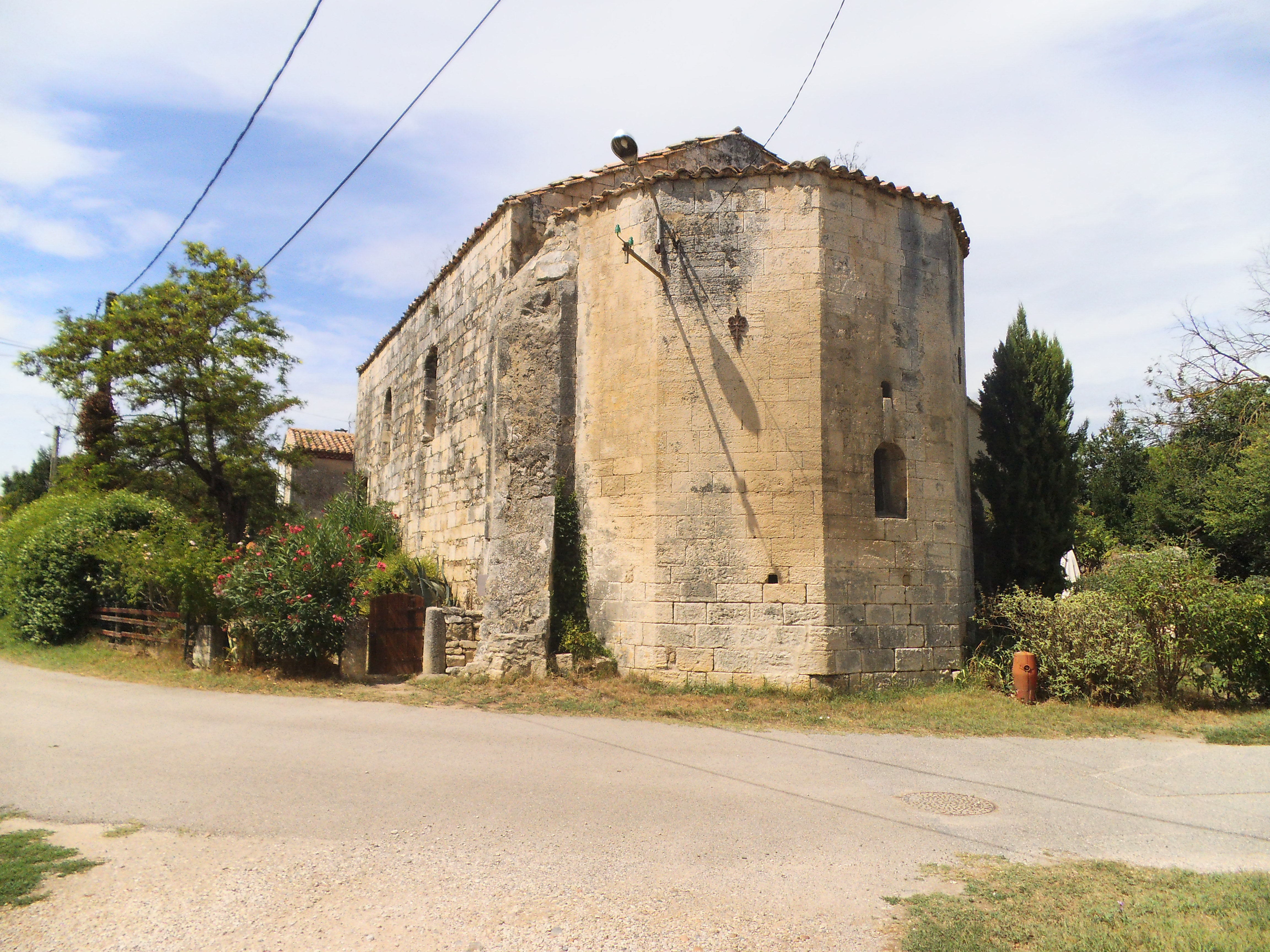 DSCF0527I end up on an industrial park. The simple map that the drunk drew indicates La Mourgue should be opposite. Needless to say, it isn’t. I turn up a tiny lane and am confounded by a beautiful chapel – the chapel of St Thomas de Laurade. It’s a Templar edifice dating from 1196 and thus one of the oldest in the area.