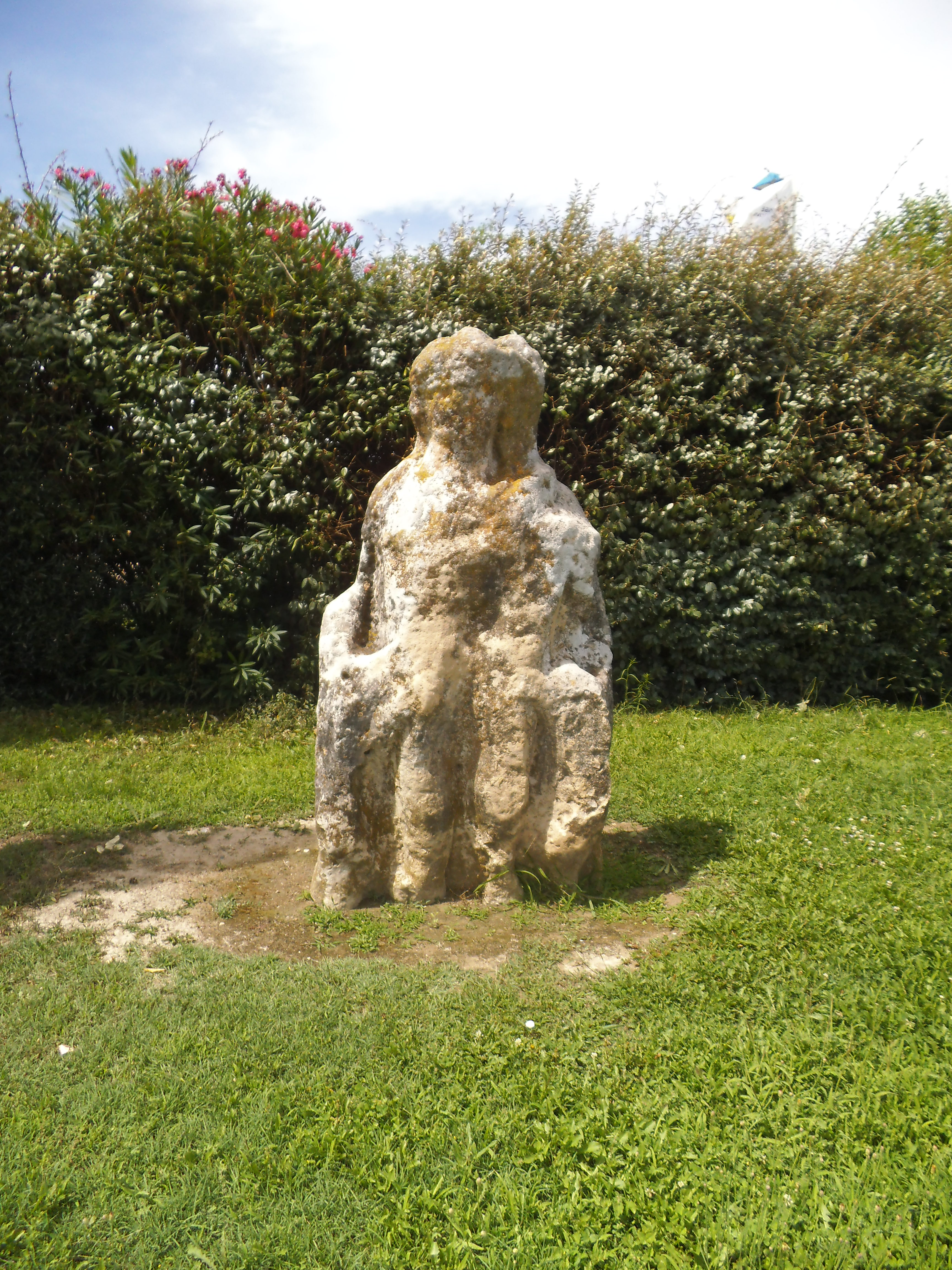 I never get to the chapel even though I reach St Etienne du Gres. Not a lot goes on in this village. On Assumption day, it dies. I drive around looking for people. Looking for La Mourgue. It’s a tall, wide statue. Shouldn’t be difficult to find. The one and only bar in the village is open and full of men. Loins girded, I enter and ask for directions feeling I’ve no chance. A man, who looks, smells and walks as one who’s been ensconced within for some weeks, draws me a simple map. There are only two roundabouts involved.