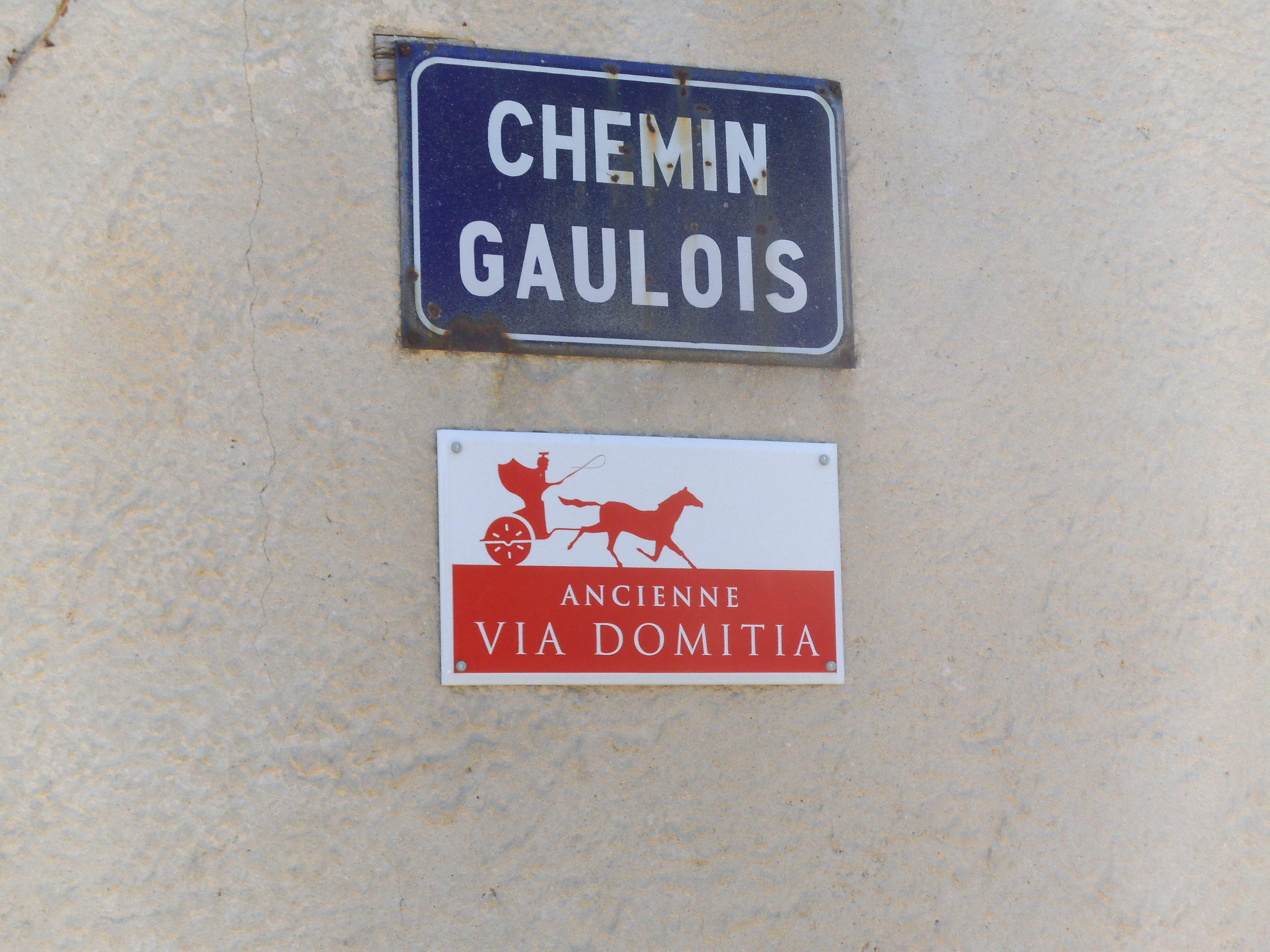 DSCF0593On the other hand, the Via Domitia, signs of which my knowledgeable friend, Julie Mautner, alerted me to, was constructed in 118BC and is well maintained today. And if that’s still not enough roads, consider the many and hidden ways that were used in WW2 to transport all types of wanted people from the so-called free zone into Spain via Nimes.