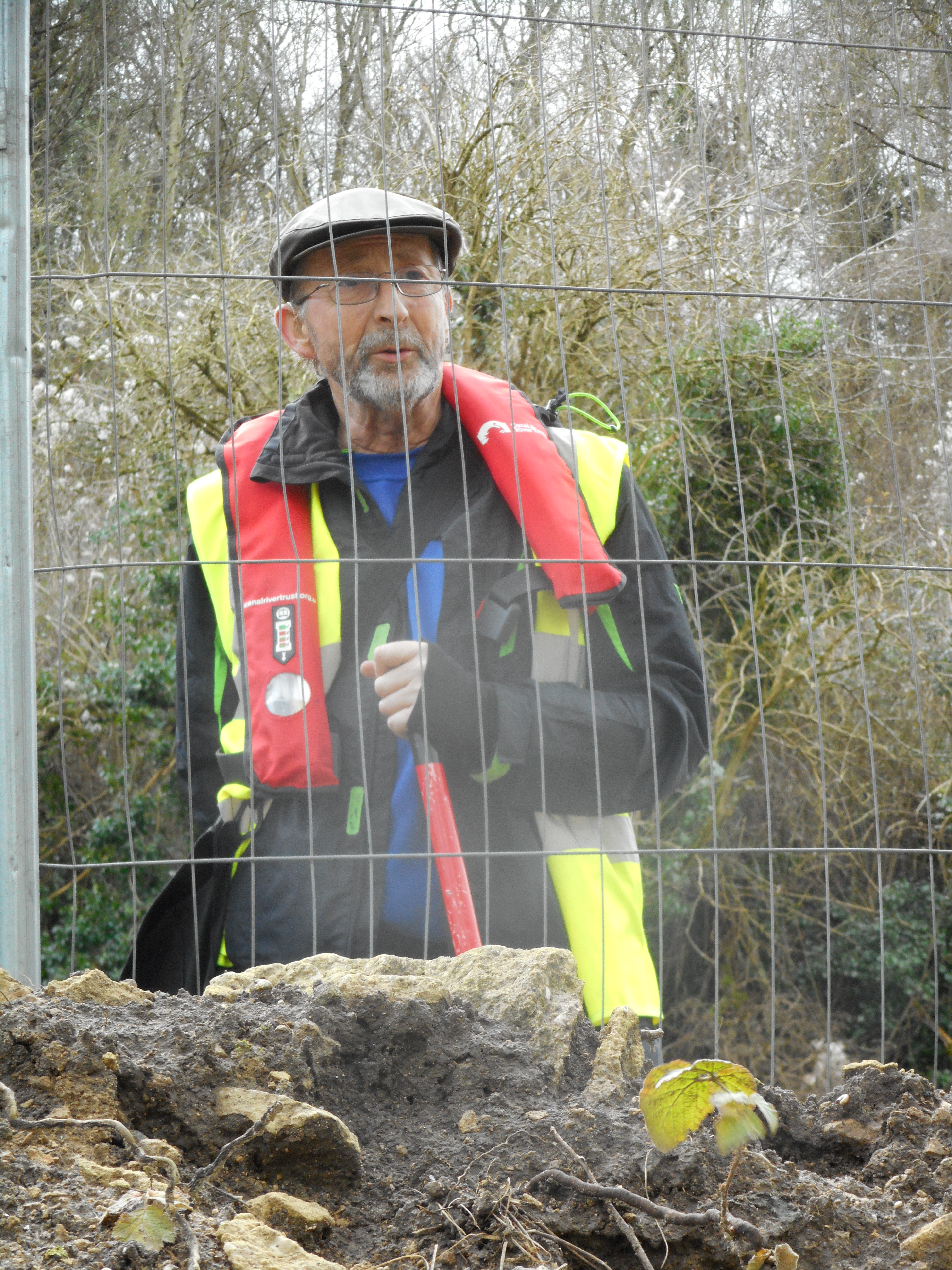 Ian is not in a cage. I am in the cage looking out but more of that another day. Ian’s on the towpath with his measuring stick. He can measure widths and lengths.