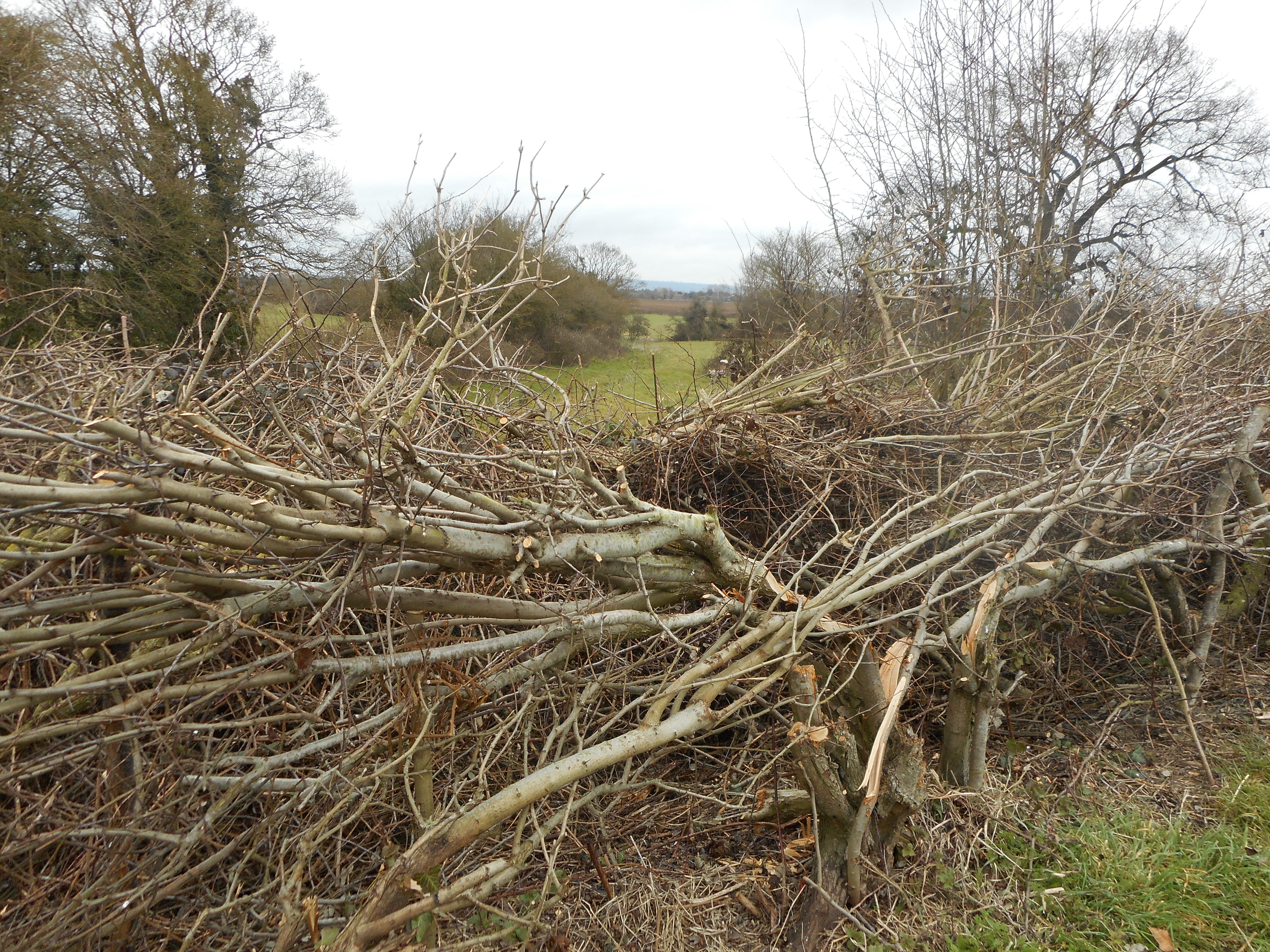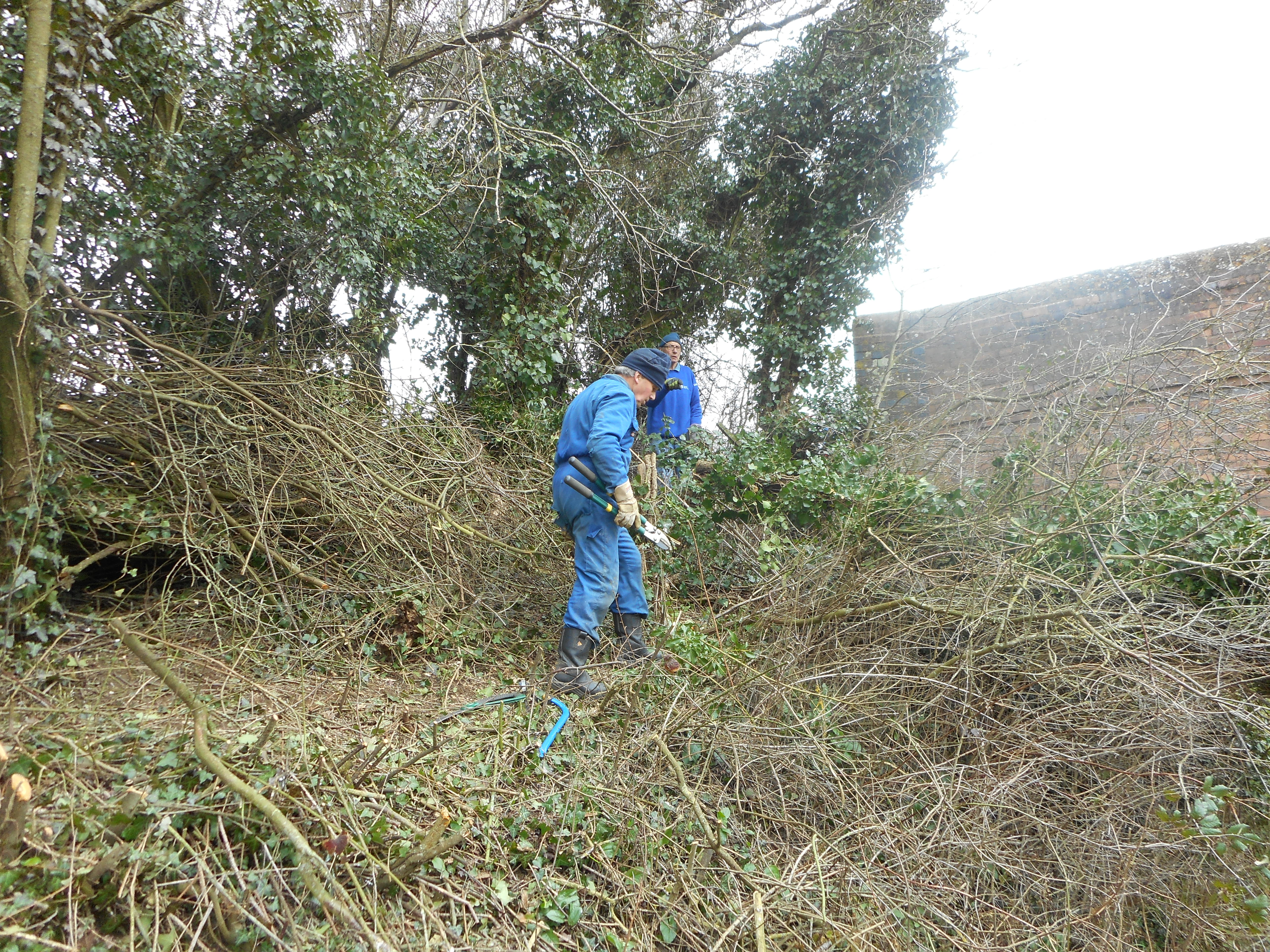 There’s a downside to dressing in a high viz jacket. You become the target of those who like to complain which is why I’m not investing in anything of a luminous yellow nature. Apparently, cyclists complain a lot about thorns on the towpath. As a walker of the Kennet and Avon, I don’t much care for cyclists. People on wheels believe they always have the right of way. I’m never in a hurry and generally stand aside because cyclists are inevitably pressed for time. Thorns impede their progress. And thorns come from hedges along the towpath. The Canals and River Trust (CRT) contract professionals to cut back the annual growth of the hedges to preclude impediment of the towpath. However, animals or wind disturb the cuttings and those irritating little thorns blow onto the towpath. Enter the CRT volunteers who use the cuttings to make woven fences where, previously, there was no hedge.