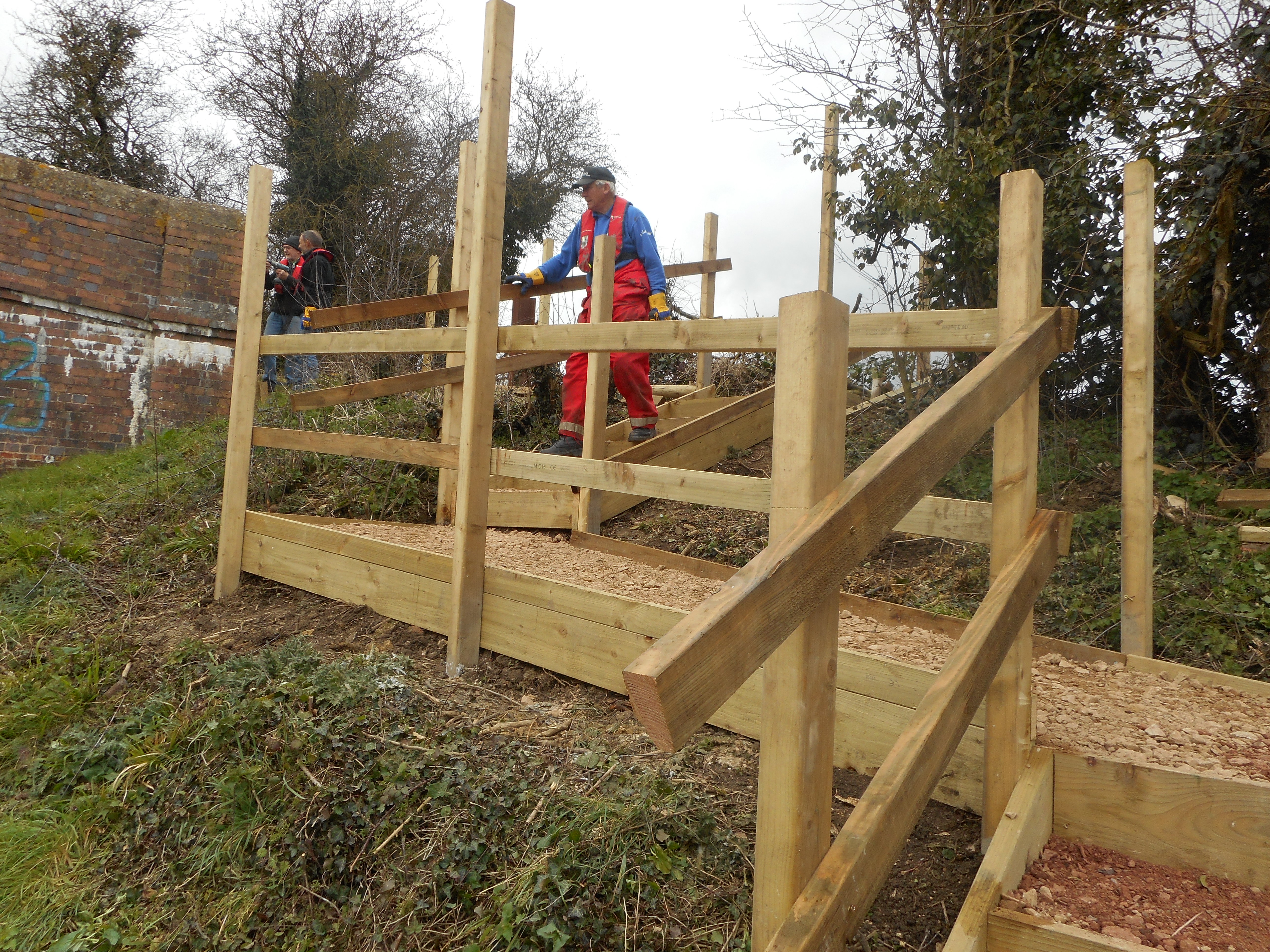 Reader, you know I like to write blog posts with my tongue stuck somewhere in my cheek. Today, as I discover what is far from bleeding obvious, it’s not possible. Later, we go to Whaddon where the teams are clearing the bank of overgrown foliage and constructing a new set of steps. The weather has closed in but these men continue to make good progress. Here’s an ex-ocean liner captain, engineers of various types and other professionals committing hours of retirement time, in good spirits, to the well-being of those parts of the canal that people like me hadn’t even noticed before, having taken it all for granted. Never ignore the bleeding obvious.