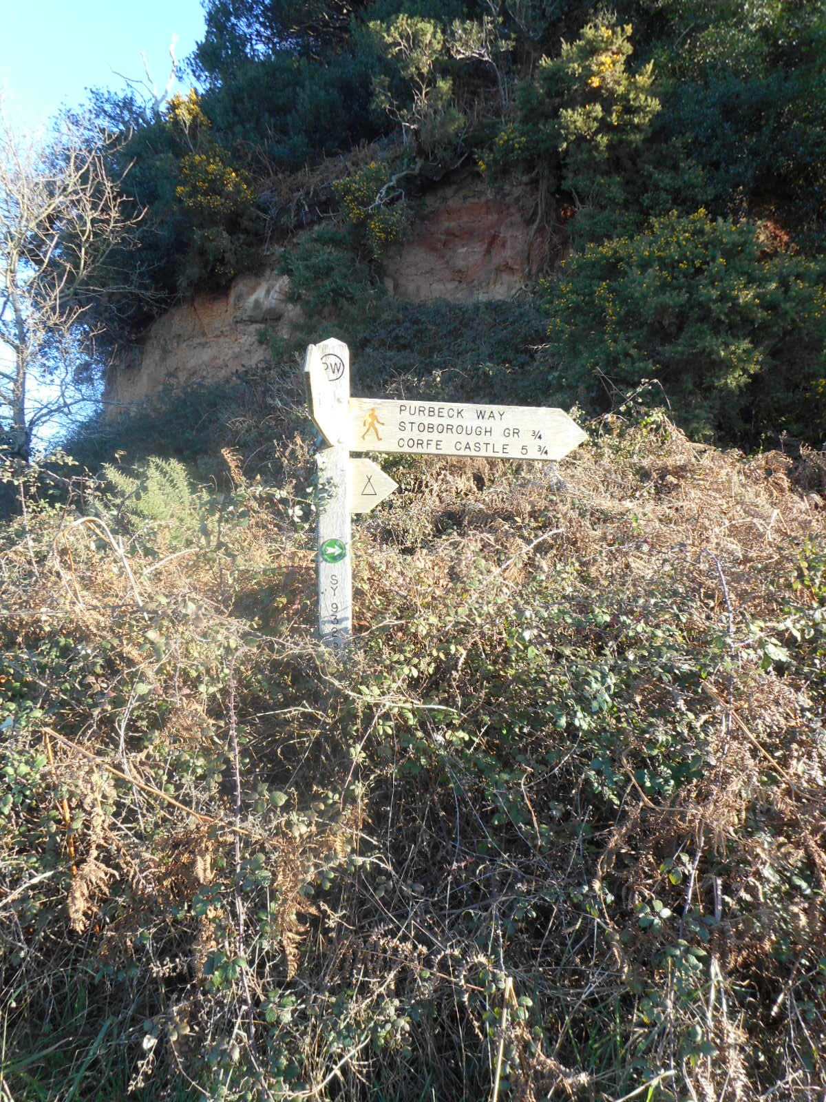 It’s a pictorial map: it depicts three bird varieties, a butterfly, a deer, a couple of trees and two cairns. Not much in the way of directions though; just some dots wriggling across miles of pale green nothingness. Still, I’m looking forward to the cairns. Wareham boasts archaeological evidence of Mesolithic activity around 9000 BCE so you can be sure the ancients were traipsing here eons ago. Perhaps, they, too, were following the Purbeck Way. Later, I will reflect on why I’m actually following signs for the Purbeck Way: possibly because they look rustic and, more importantly, because there aren’t any other signs. Perhaps it means do it in the Purbeck Way – a sort of rural Lambeth Walk. Whatever, it’s only in the evening that I notice the infamous PW isn’t mentioned once on The Map.