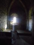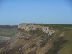 Oh what pleasure to find the chapel open and to have it to myself. There’s some really interesting and ancient graffiti in here but the photos I took failed to give that impression. I help myself to a handy leaflet and perch on an ancient bench behind the door to search my rucksack for thirty pieces of the coins of the realm for payment. I didn’t envisage shopping when I set off, and no-one except me will know whether I paid or not but, having located the due fee, I hear voices outside. As I can’t be seen, I emit a warning of my presence: ‘don’t jump’, I call affably. There’s no answer and the bodies attached to the voices fail to make entry. Maybe they think some ghostly type is warning then not to jump off the nearby cliff. They wait until I leave. Scaredy cats.