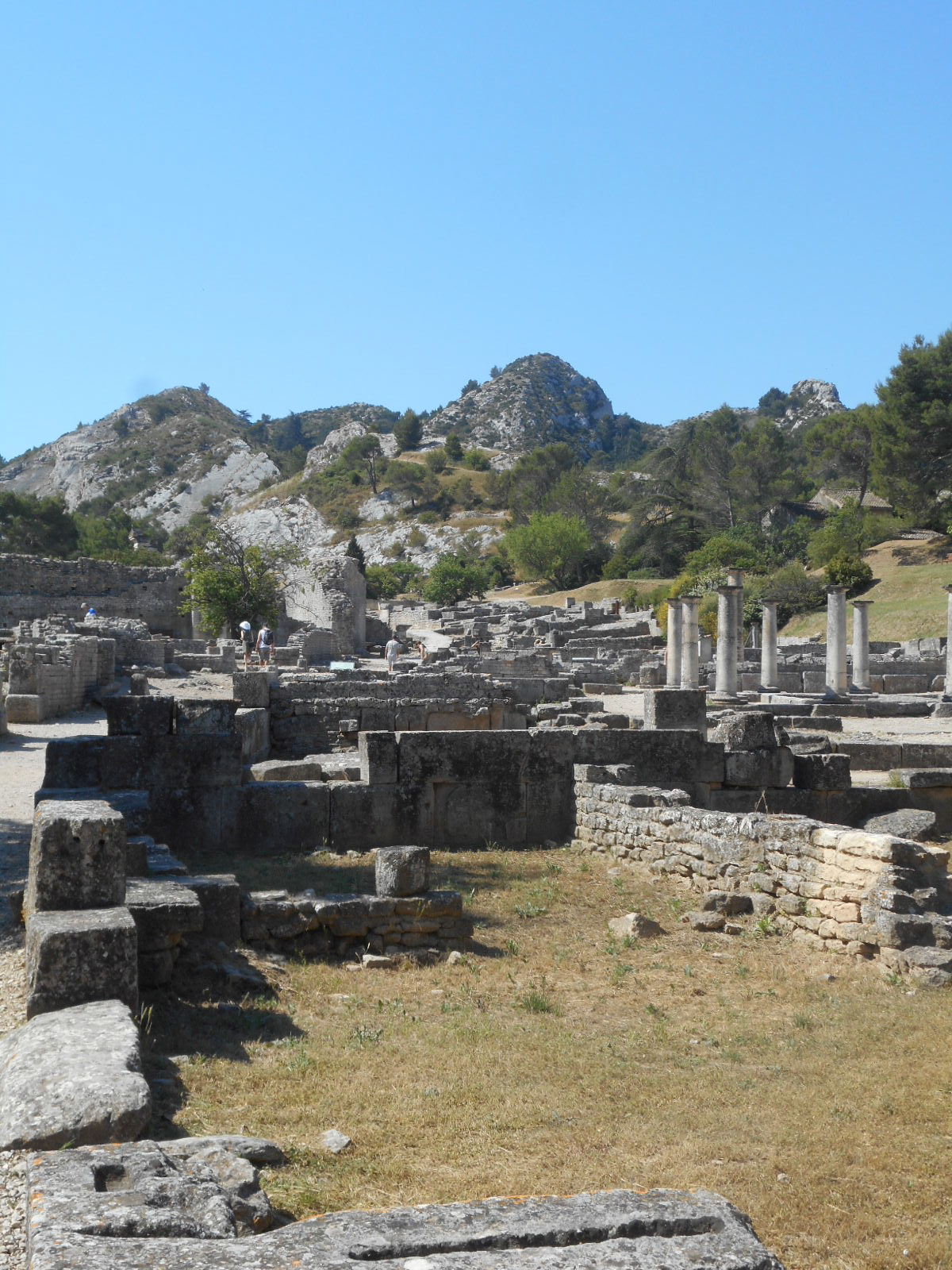 Following my astute advice, Glanum is our next port of call; in this searing heat, I don’t think it will be possible to remain standing in the place much later in the day. As it happens, the woman who collects the tickets we purchased three steps before advises us that the place will close for the remainder of the day at noon. Strange, I think, and think no more. Russell views the ruins and is positively orgasmic. Nice to have it to ourselves, I remark. Just then a crowd of three hundred schoolchildren appear noisily around the corner and he’s off; pushing and shoving his way through the unwelcome intruders. The stride has practically evolved into a sprint. But I thought you were an educationalist. Russell, I screech, you’re missing the well, but he’s gone, leaving only a cloud of Roman dust.