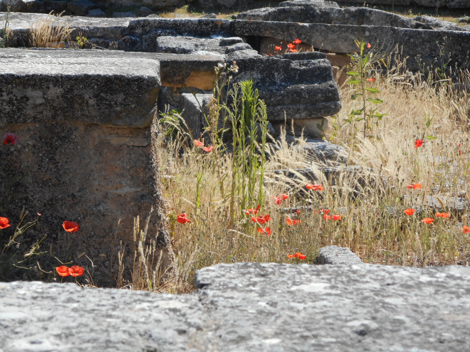 I love this place, probably for all the wrong reasons, and decide to try a few botanical snaps: random poppies juxtaposed against the ancient stones; that type of thing. Sometimes, I catch a fleeting glance of him, knocking children to the ground, but largely he’s lost in the midst of time. Eventually, I catch up with him by the sacred spring where he’s muttering about sewers. Then he’s off up the hill and I’m gasping for breath in his wake. Finally, we get back to the entrance to find the place crawling with gendarmes and a variety of police vehicles. Do you think there’s been a murder, I ask excitedly. He has lunch on his mind and, as usual, no interest in the quotidian. These academics are clever types but I sometimes feel a whole layer of life passes them by. Me, I’m just plain nosey and have to ask someone what’s occurring. A crime of passion, apparently. They’re filming the one and only episode of NCIS St Remy. Lovely.