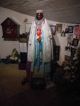 The church was fabulous. Wait, did I just say that? Icons to the left, icons to the right. A fantastic display of paintings that folk had presented over the centuries with the Maries in a floating boat saving the day. And downstairs, a full-sized model of St Sarah who’s the patron saint of gypsies. I loved it all so much that I was happy to accompany him up to the roof.
