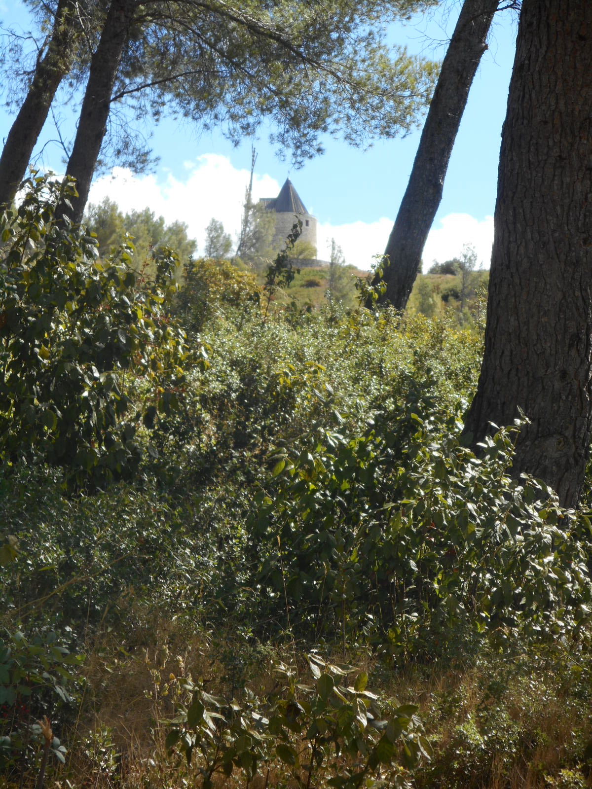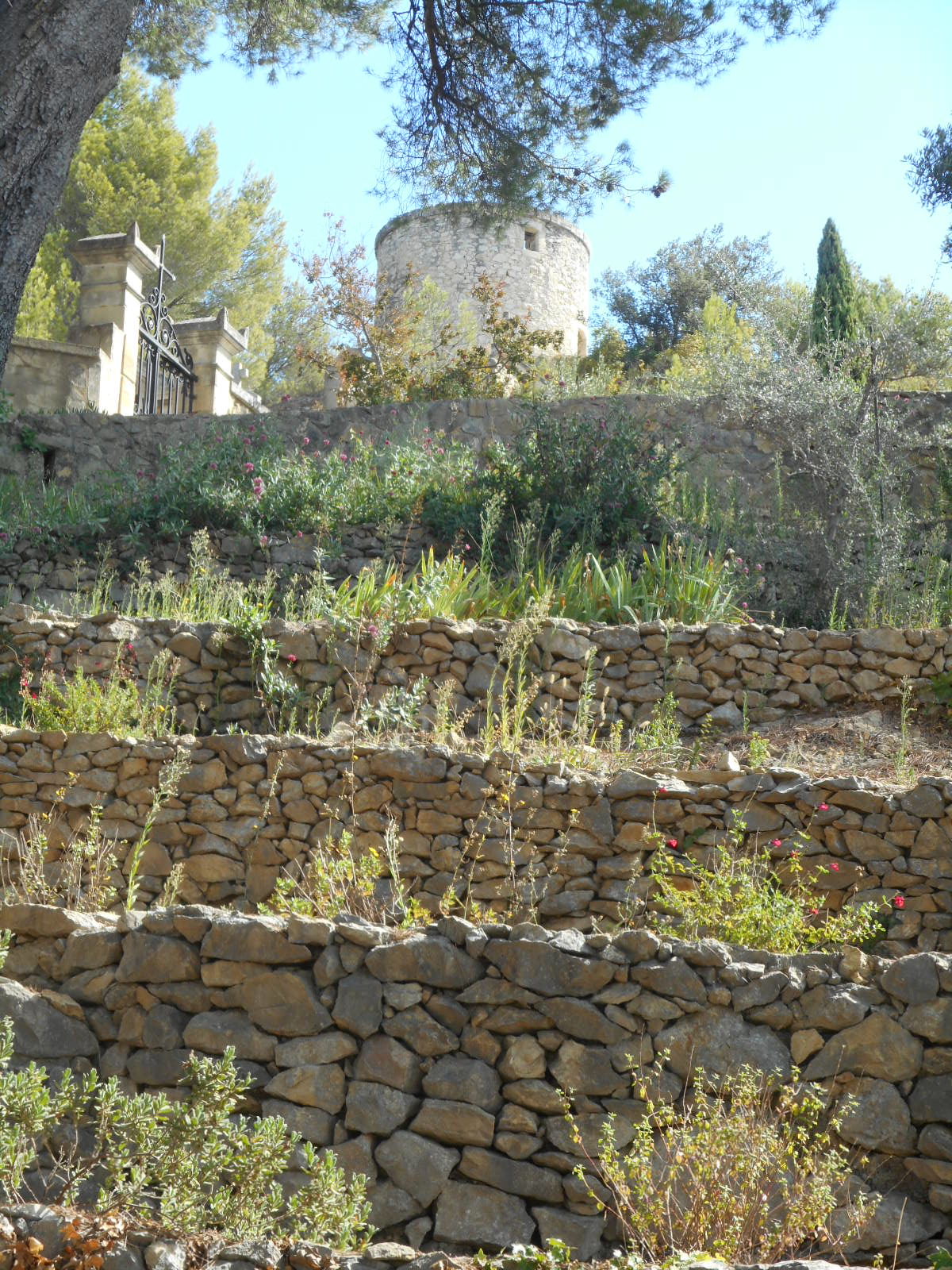 Close to hand, I can see the windmill but it’s not THE windmill, renovated and complete with sails, that can be seen from the road below the village. That windmill has completely disappeared so I make my way to the second best option