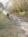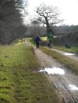 I take the least muddy of the two and meet Jenny and her dog Bodie. Bodie decides to fall in love with me and instantly rejects Jenny. She and I have a conversation about the weather and the treacherous conditions underfoot on this part of the drove. I think she’s probably only passing time until Bodie gets over his crush but, for the dog, it’s the real thing and he’s going nowhere fast. In the end, she has to physically drag him away. There they go. Bye Bodie. Missing you already.