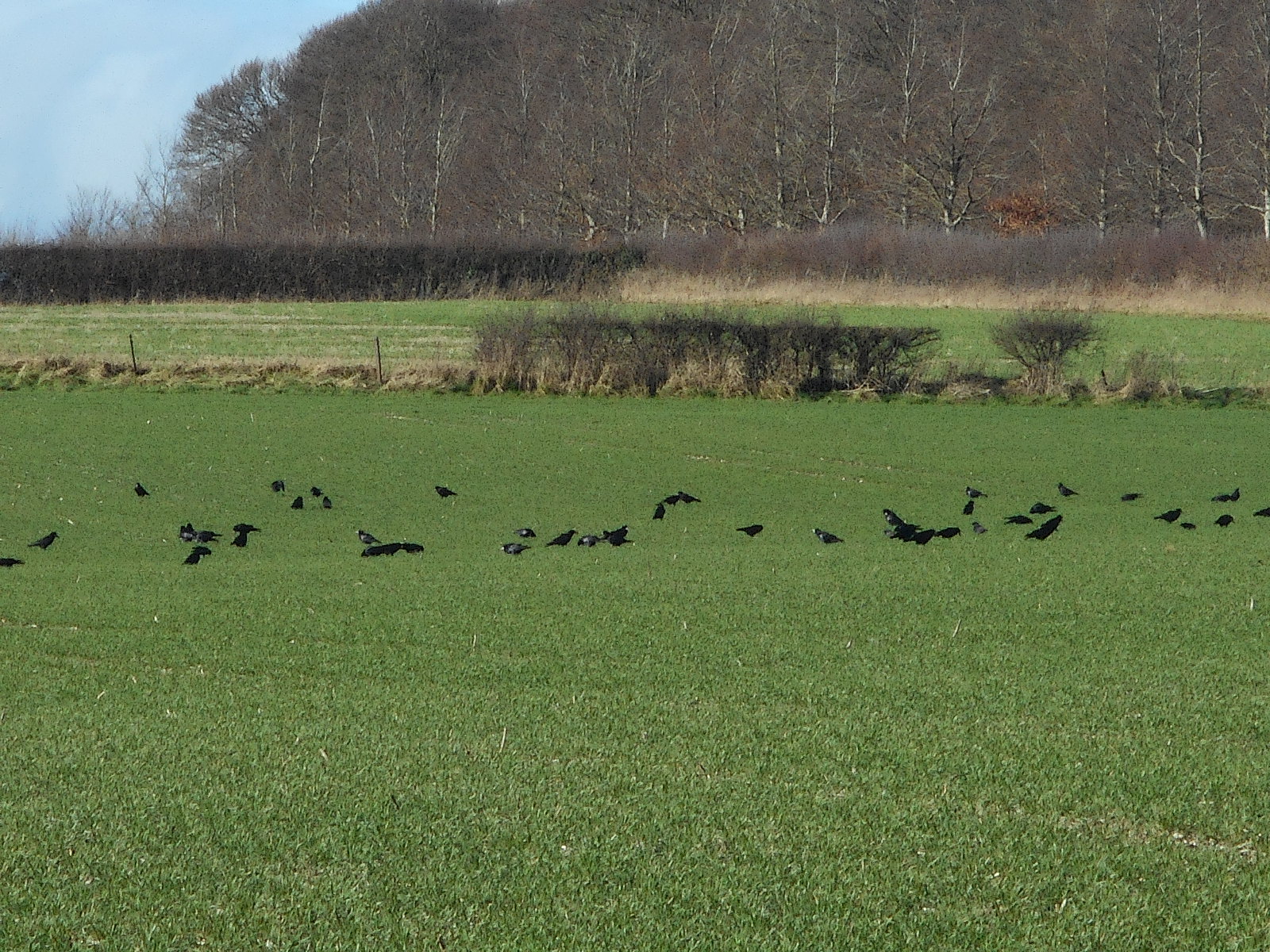 Along the way, I note a farmer busy on his tractor on the ridge. Below him is a lush green field full of rooks feasting, no doubt, on the goodies that have emerged after the flood. It reminds me of Van Gogh’s painting of the crows in the cornfield at Auvers-sur-Ois. My field is greener but still evocative.