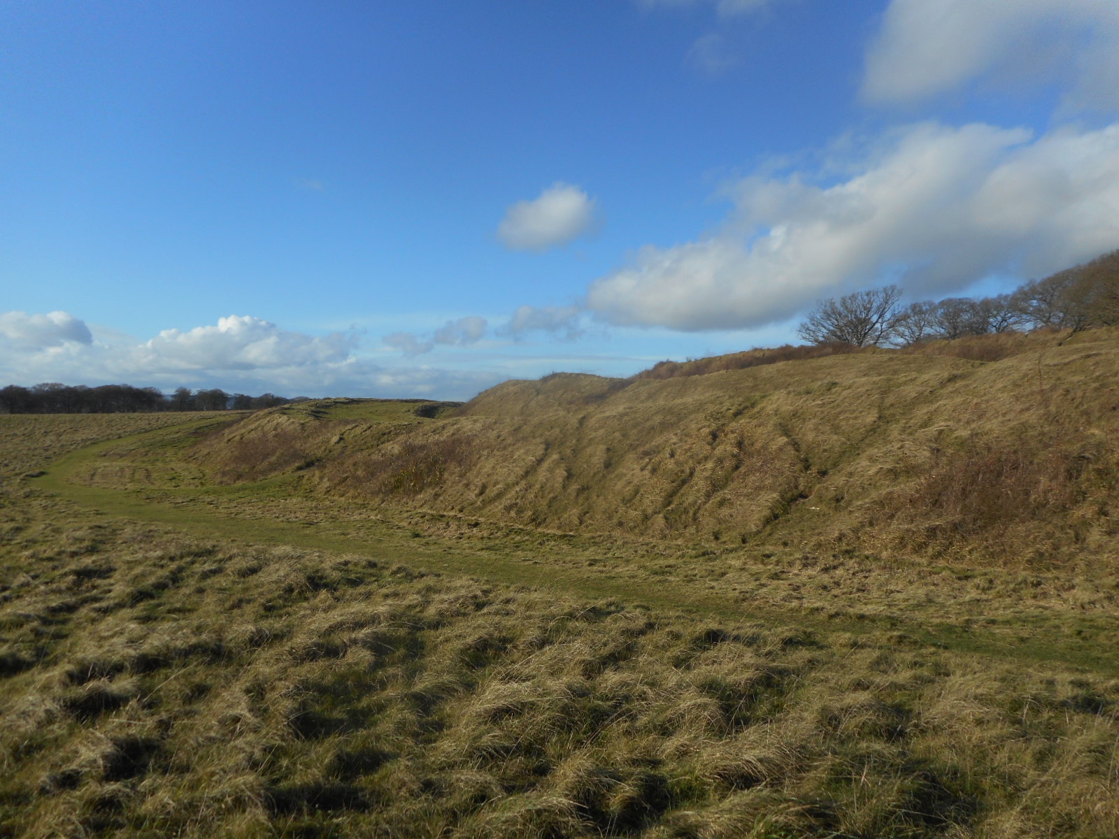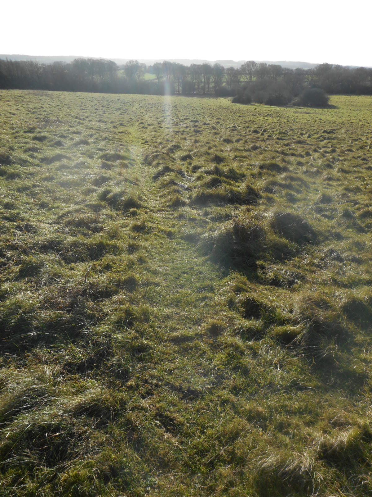 I walk along the bottom of the rings which I’ve never done before. It gives a different perspective of the earthworks. Then, in the most ridiculous move of the day, I take this track across a field thinking I’ll be able to reach the road. I am foiled by a double barbed wire fence that even your intrepid explorer fails to master. What can I say? I must turn back but there is an unanticipated saving grace. A hare that clearly wasn’t expecting human company bounds out from antiquity. Too fast for my camera but a treasure not to escape memory. My home is adorned with images of hares but I’ve seen so few in the wild that this is surely a magical treat.