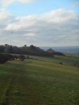 During a particularly violent Mistral in Provence, a friend once asked me to open the car door carefully in case it blew away. Ridiculous, I thought, but that warning comes to mind as I try to leave my vehicle today. I was going to do the circular walk but this seems a little adventurous. Instead, I head off down the hill at quite the pace with the wind blowing me along. Along the way, I meet those struggling back up and they are, indeed, a sorry sight. Children, particularly, are crying with the cold. I note that fully formed icicles hang from their little noses as I accost the parents to ask about access to Melbury Hill.