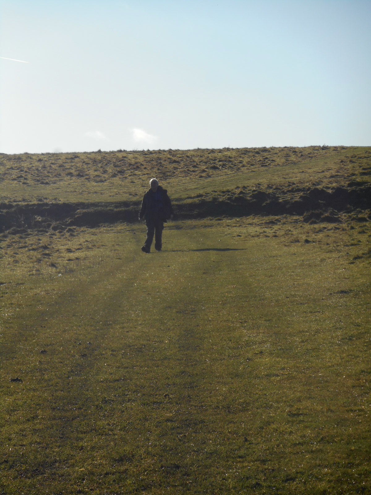 We’re in a vast expanse of countryside. Miniscule figures walking in the footsteps of the ancients. It’s too good to be true. Tony is miles ahead, lost in his own wilderness of thought. Sally is busy snapping but I call her over to look at something I’ve seen but am unable to catch on my little camera: Shimmering over these timeless tufts is a myriad of spider webs which form a field of glistening haze.