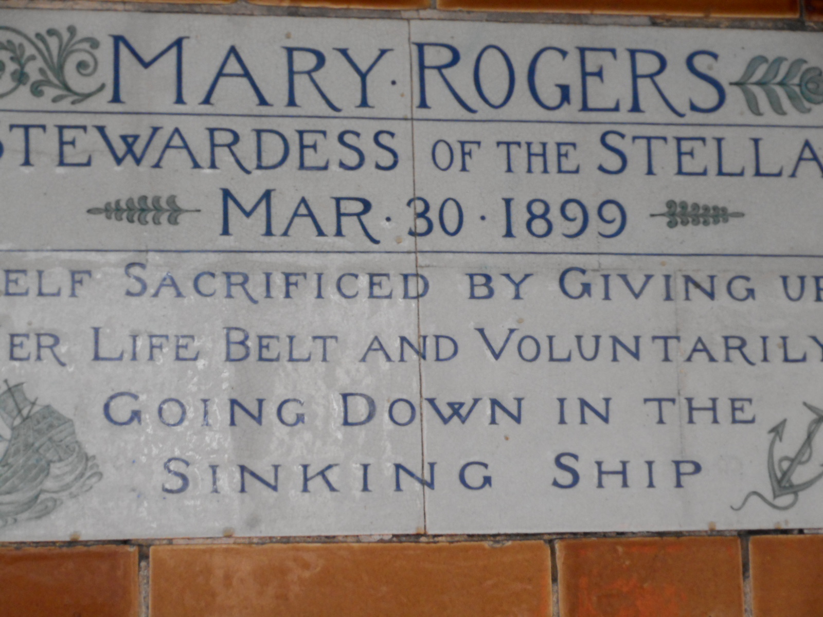 Sadly, one of the lifeboats capsized and the ship sunk within twenty minutes. 75 people, including 19 crew members drowned but 106 people were saved, although fifteen hours passed before they were rescued. There was an enormous amount of publicity given to the disaster and to the bravery of Mary Rogers. A fund was established to support the elderly father and two children she left behind which reached £570. Of this, £500 was given to the family members and the rest financed this second memorial which can be found near the waterfront in Southampton.