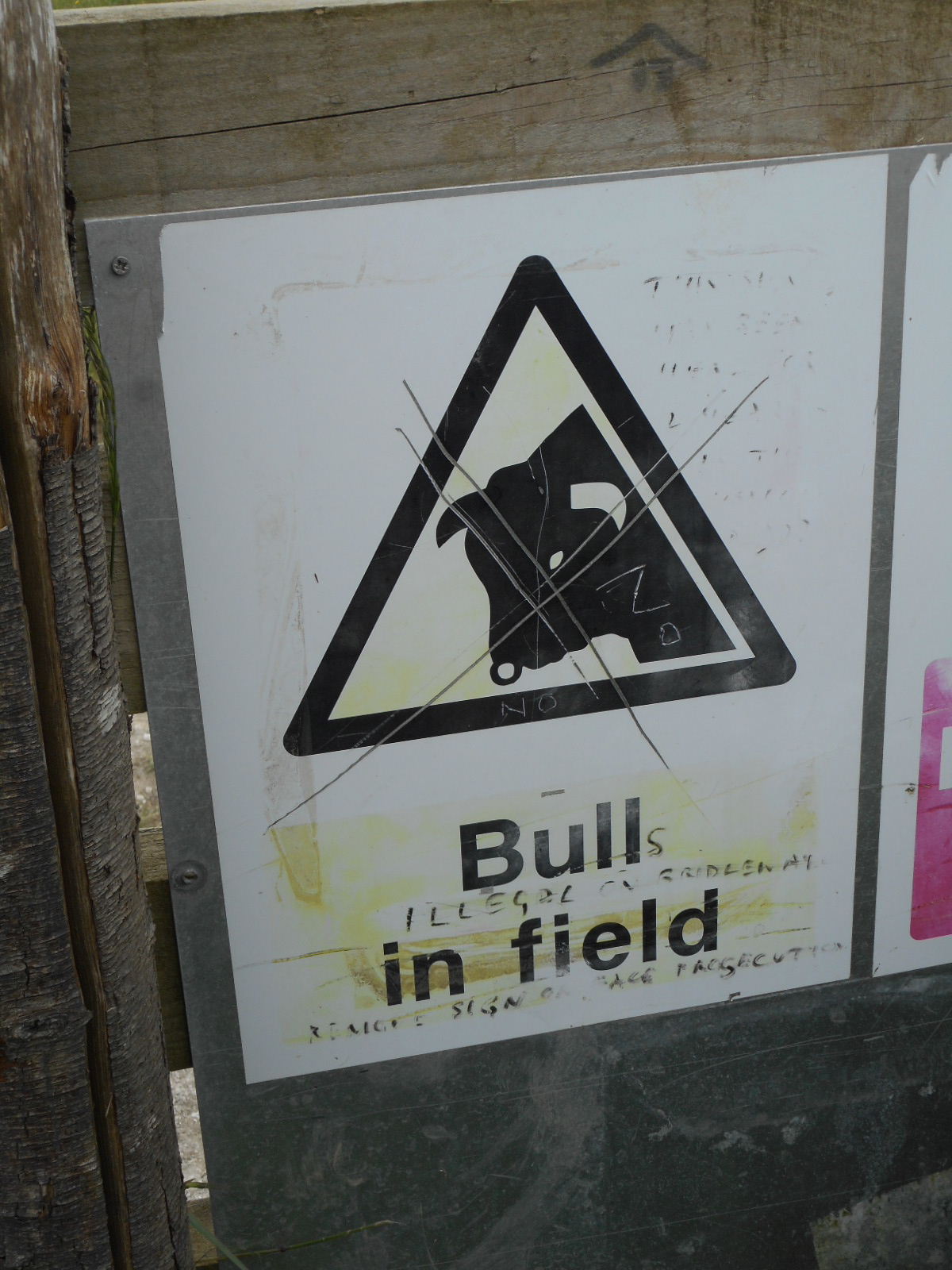 Worse, when we arrive at the gate to make our entry onto the down, we discover about three million more cows than sarsens. The pathfinder doesn’t do cows. Neither, apparently, does the person who has defaced the sign warning that at least one of these beasts hasn’t been ‘wethered’.