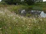 According to the guide book, there’s a chalk white horse on Hackpen Hill. We make a half-hearted detour to locate it but the way is tricky with nettles and boulders and we give up. Maybe the next project would be to traverse Wiltshire’s white horses of which there are eight scattered around. In the meantime, we journey on to Berwick Bassett Down where a dew pond awaits our perusal. It’s rather pretty. A dewpond is sometimes known as a mist pond or a cloud pond, both of which sound more attractive to my tinnitus infested ears. They’re artificial sources of water used in the past for feeding livestock and are generally replenished by rainfall rather than dew, mist or clouds. Hutton offers copious instructions on how to make one. Not today thanks, Edward. We don’t have any livestock and if we did, well we’d use this one.