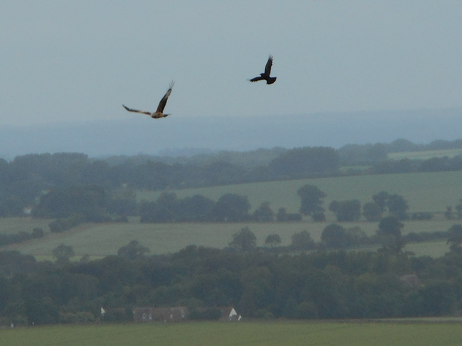What more can one hope for in a mystical landscape? Well, actually, a red kite wouldn’t go amiss and here’s the first of many available in this neck of the world. A birding friend of mine is anxious that the red kite will see off the buzzards that have taken so long to re-establish themselves in the south of England. I don’t think she needs to worry too much as this kite is being shown the door by its smaller predatory neighbour.