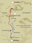 There are four of us beginning our journey along The Great Stones Way: myself, my friends B and Pathfinder Powell, and Edward Hutton whose 1917 edition of Highways and Byways in Wiltshire will inform me historically and geographically. Hutton gives a solitary sentence to Barbary Hill in which we learn it to be 800 feet above sea level and the possible site of Cymric’s victory over the Britons in 556. I get the feeling Hutton never actually travelled here unlike the South West Glamorgan Pigeon Federation who have several hundred birds in the car park waiting to race back to Wales this morning.