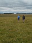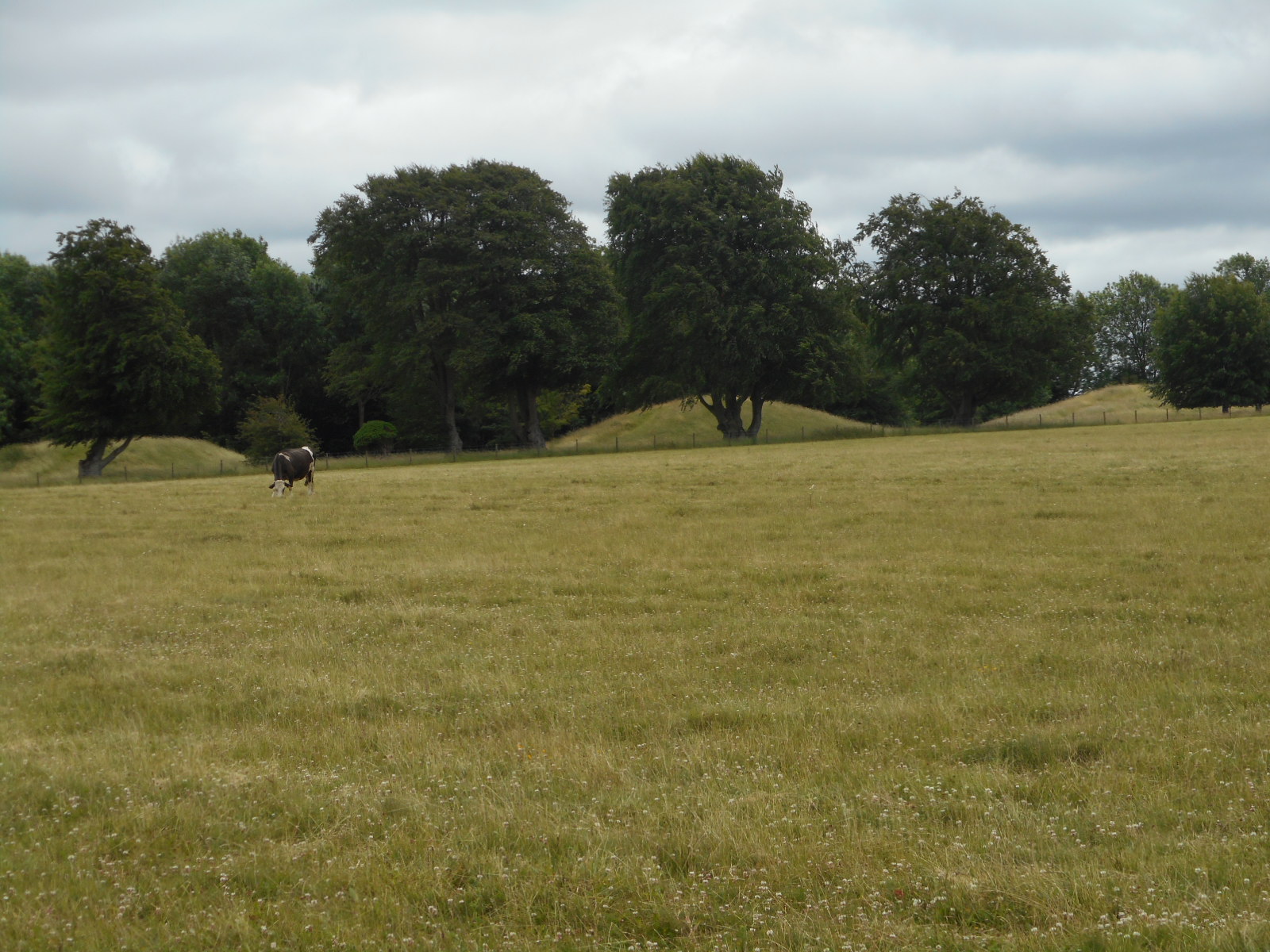 These days, the barrows are mostly clothed in trees so it’s not until we pass the first group that we emerge back into the open to begin our processional walk. And thus not until this point do we discover that the vast tract of land we’re about to cross is full of cows. An involuntary ‘oh’ escapes me and the other two think I’m still exclaiming the beauty of it all until the pathfinder sees what I’ve seen. It’s a tricky moment in time. The pathfinder has turned very pale and quiet. The alternative route would be to continue on this path and walk down along the road but that would be hideous. We trundle off to inspect one of the barrows while a decision is made.