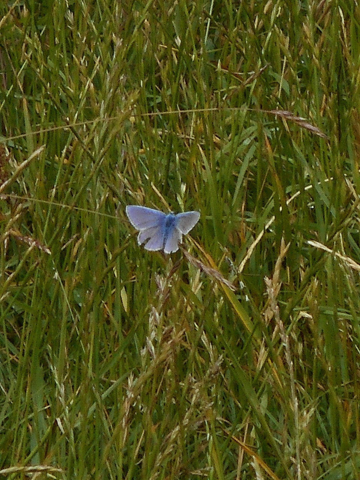 Durrington Walls, however, where we begin our walk, was in visible existence. Hutton begins promisingly with the statement that ‘Durrington is a place of great antiquity where there was a village before the beginning of history’. Correct. Sadly, having got that news out of the way, he then drones on and on about chapels and churches, topics with which he’s far more comfortable. Durrington Walls enclose what was once a large Neolithic settlement which may well have been where those who built Stonehenge resided with their families. On this sunny morning, one of the final bearable few before the heatwave begins, the long grass is still wet with dew. We stride through wondering whether shorts were such a good choice as we towel our legs down. The grasses are also full of moths and butterflies which rise and flutter away on our approach although I manage to trap a ‘common blue’ in my camera lens. You may call it common; I don’t.