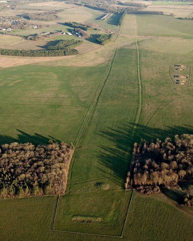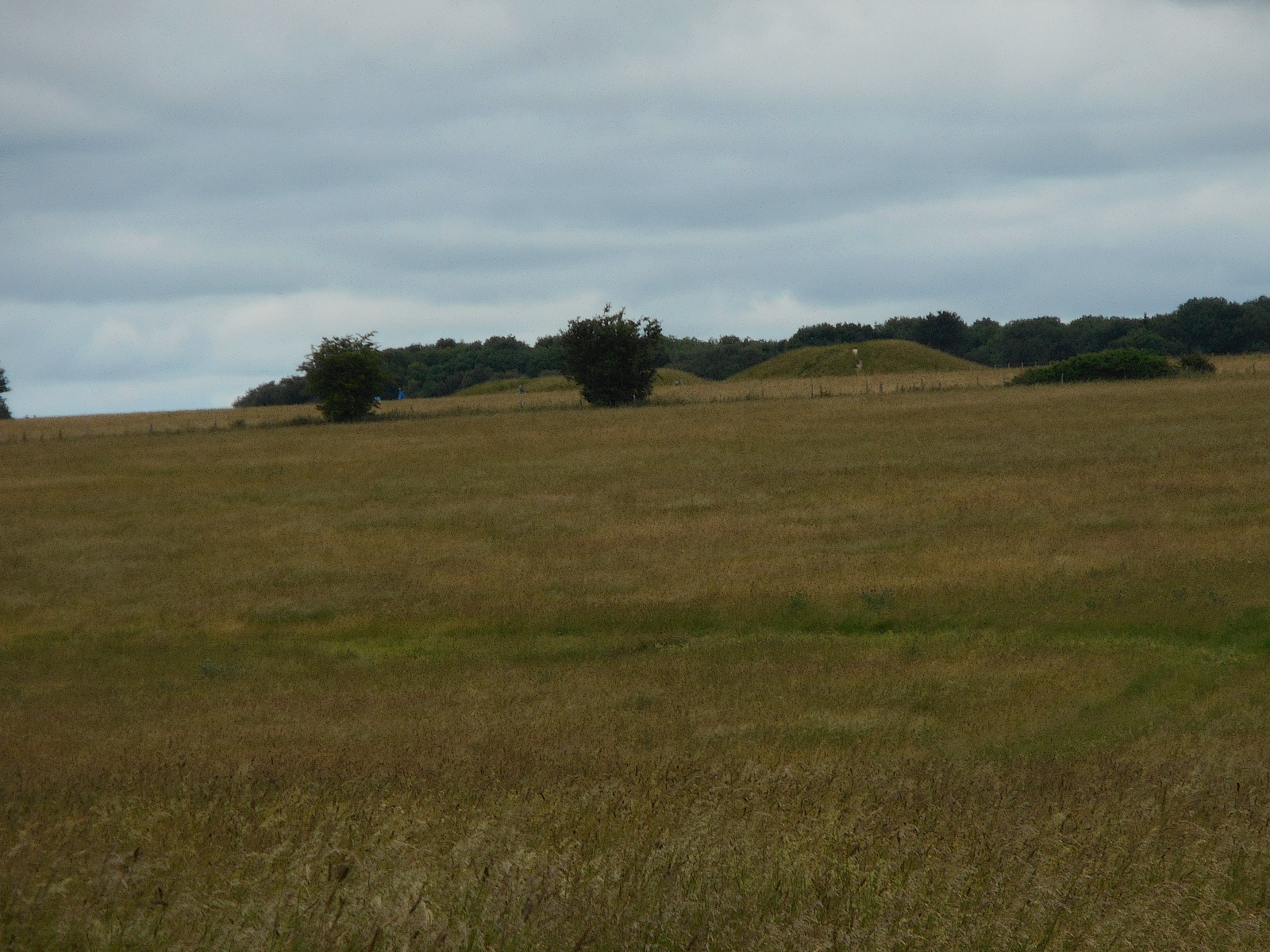 From this viewpoint, we are looking straight along the Cursus. Well, we would be if you could see it but, of course, its visibility has been lost to the modern day traveller. The Cursus is approximately 1.9 miles long and between 330 feet and 490 feet wide and was constructed several hundred years before Stonehenge. The second photo is a highlighted image courtesy of English Heritage. Looking at it on the map and in this image, it appears as a racecourse, for which the Latin word is – cursus. I consult Hutton as to his thoughts but he’s sulking and isn’t speaking. Neither does he have anything to say about the King Barrows alongside which we amble on our way to The Avenue.