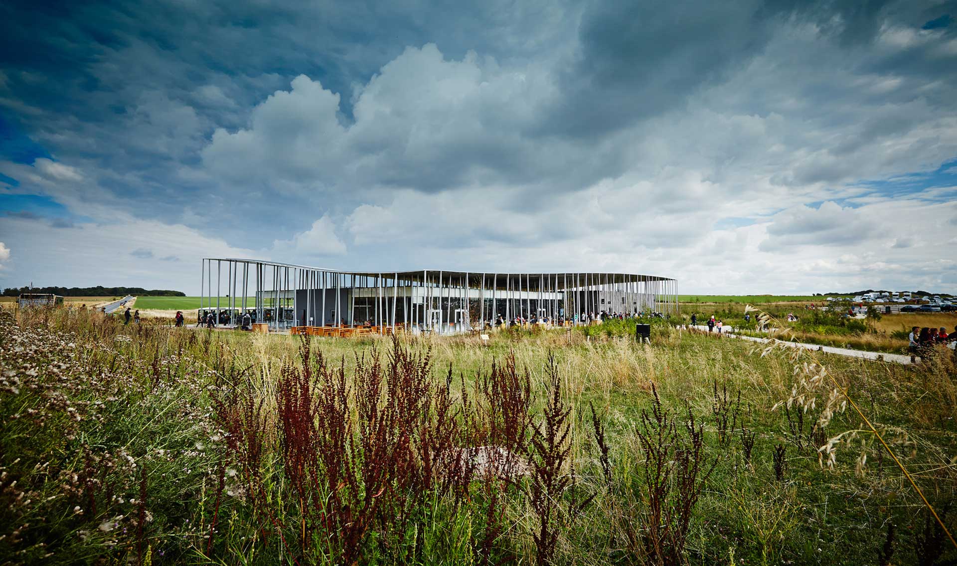 On the positive side, the new visitor centre, once we crawl in, is excellent. It’s difficult to describe the façade: it looks like one of those weird buildings they have on Grand Designs but it somehow seems to fit cleverly into the landscape. (Photo courtesy of the architects, Denton, Corker and Marshall).Today, of course, the place is full of spotlights, portaloos by the hundred and temporary parking areas in preparation for the solstice arrivals but none of this paraphernalia would normally be here. And the award winning exhibition is truly impressive. My favourite part is the digital wall which gradually changes from the original bare landscape to show the evolution of the Cursus, the barrows and the phases of construction of Stonehenge over time. Much to Hutton’s disgust, it’s fairly rammed with schoolchildren. And why not Edward? They’re not about to read Highways and Byways in Wiltshire.