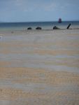Time is passing and with it, the opportunity for a picnic. I stop awhile to eat my prawn and cottage cheese sandwich at a point which I think is free of naturists. This part of the sweep has been set aside for those who wish to lose their clothing for as long as I can remember. However, there are one or two stragglers who have gone off piste. In general, I don’t mind. However, there are always those who to like exhibit themselves. A large naked man decides to walk across the beach in my path. He is so fat that I doubt whether he’s seen his willy for several years. He is, nonetheless, intent on me viewing his protuberance. The thing I detest the most is when they play volleyball. All that flopping around puts one off lunch. It’s not cricket. Well, no, it’s volleyball.