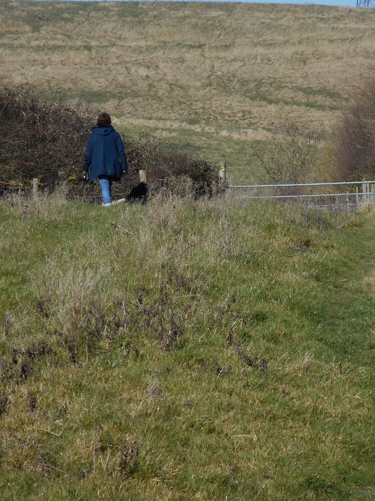 Firstly, somewhere near Sutton Farm, I meet Gus and the woman who’s walking him today who tells me she’s a professional dog walker. Four a day, apparently. Well, she’s not that professional as, having told her to ‘stroll on’, a euphemism for ‘there’s no way I’m rushing up this incline’, she totally fails to notice that Gus, who keeps looking hopefully at me, is having a massive roll in some fox poo. Oh well, someone will spot that later.