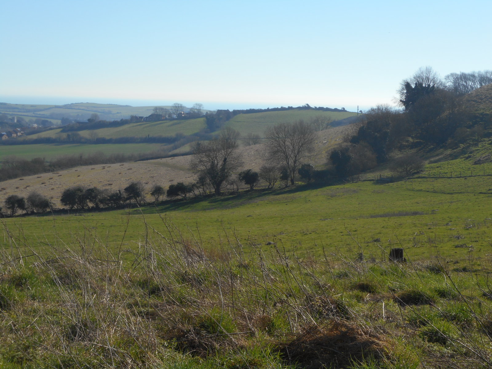 An auspicious day: allegedly, it’s the hottest February day on record; but records only began in 1918 and I can’t believe they didn’t have a few variances in the dimmer past. Nonetheless, I’ve finally discarded the winter coat in favour of denim jacket to begin my walk at Osmington. Even though I had little idea where this place was when I set forth this morning, I’ve been wanting to come here for some time, encouraged solely by a solitary photograph I saw last year in one of those free magazines.