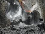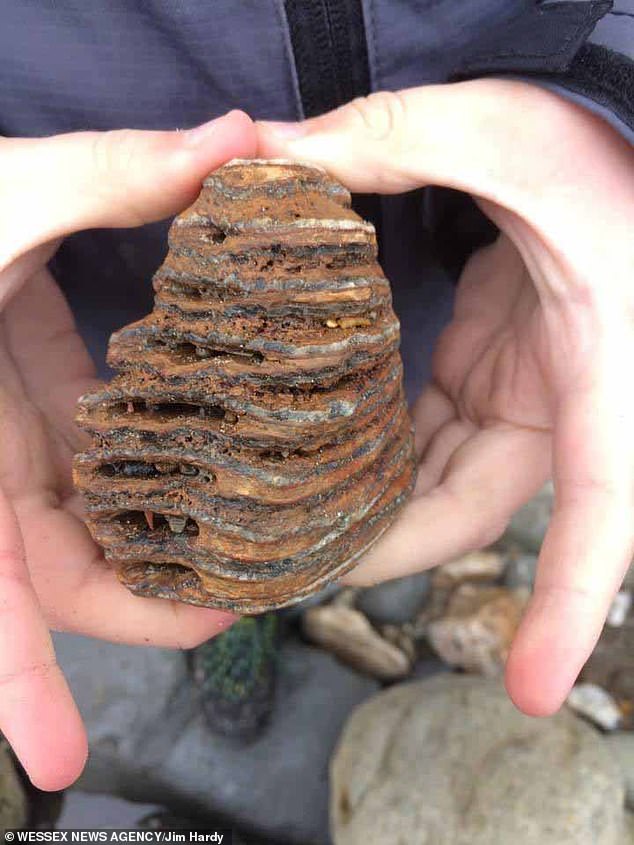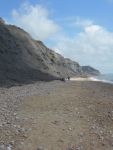 Jurassic limestone is comprised of hundreds of thousands of ancient creatures, crushed and built up over the eons. The reason why Charmouth is world famous for its fossils is due to the geology: the eternal crumbling of the cliffs means that new, or old, stuff is always being washed out to sea and returned on incoming tides. There are plenty of signs suggesting that the best fossils are found on the beach and warning folk to stay away from the collapsing crags; and definitely not to attack the cliffs.