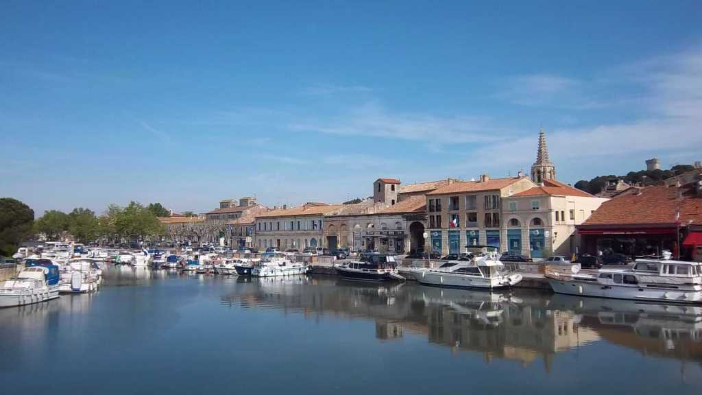 Here’s a photo (taken by Patrick Huet) of the canal at Beaucaire, and not of the public swimming pool in said town where my friend Eleanor had taken me for the first swim of this holiday. Below our outerwear, we were dressed in bathers ready to commence the shedding of a few pounds but there was bad news: the pool is shut until next Monday. This meant that we were forced to sit somewhere to the right of the photo and eat a most excellent lunch. Further, the wind had died and the temperature had reached the giddy heights of 17C, thus coercing us into dining al fresco. As I say, it was all dreadfully disappointing although I manged to shove down the plat du jour which comprised veal cooked in a cream and garlic sauce with assorted veg alongside a slice of focaccia coated in minced something or other. Shocking.
