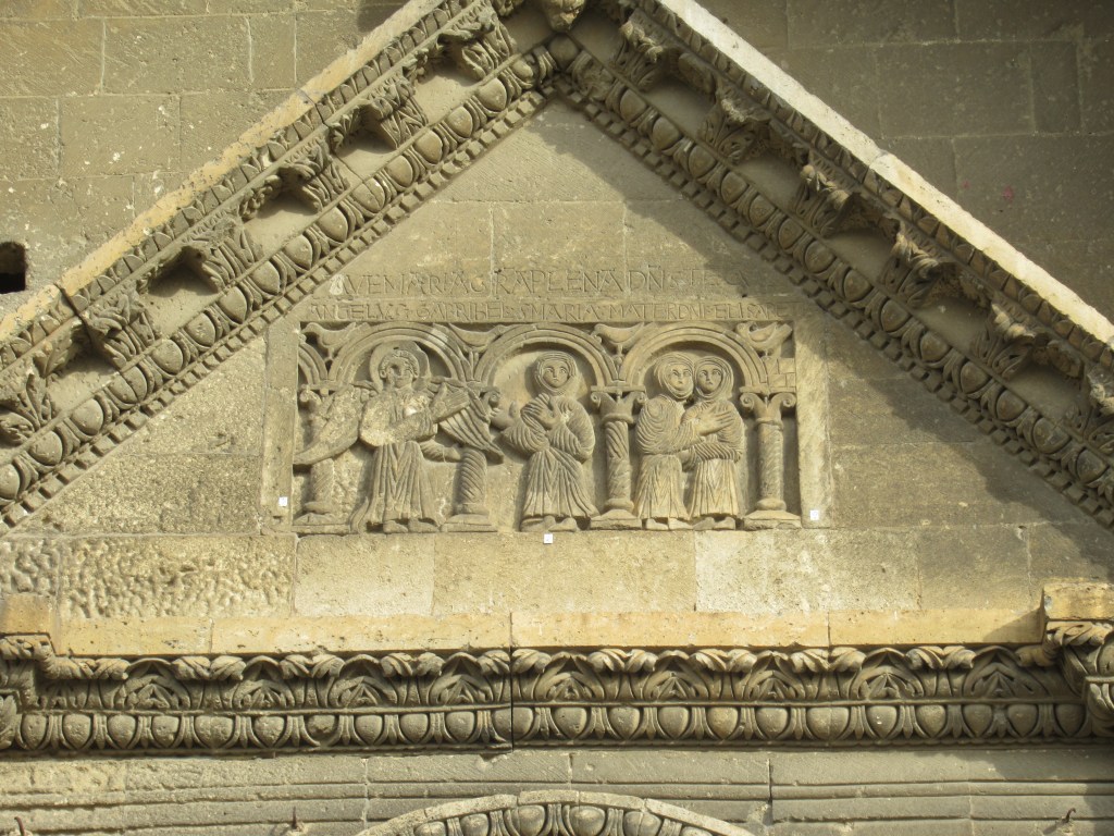 Here’s one of the external friezes which shows Archangel Gabriel making his annunciation to Elizabeth, mother of John the Baptist, and to the unsuspecting Mary, who henceforth had some tough explaining to take care of. I once turned up when the local ‘friends of Gabriel’ were holding an information event. Subsequently, they told me I knew more than they did and I should write the guide book. I’m not blowing my own annunciating trumpet – it’s just I have a huge interest in the women (including Martha & Mary Magdalene) who allegedly arrived down on the coast a few miles away.