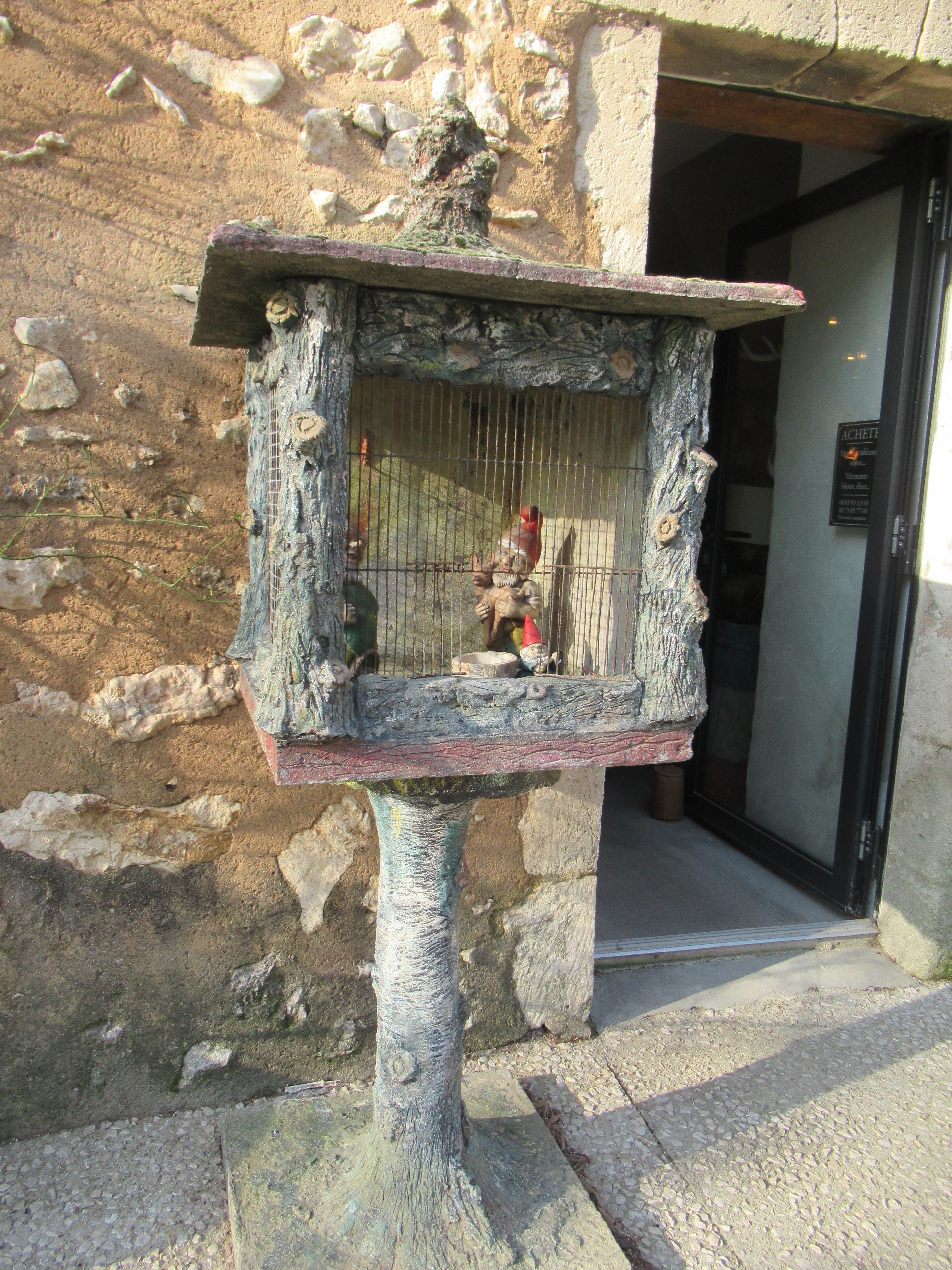 One of the little boutiques here has some of those old black and white photos of days passed in the window. Apart from the clothes the locals sport, it’s difficult to see any difference in the place but it’s now a home to some of the super rich. It’s alleged that Hugh Grant lives here and that both Sarkozy and Brad Pitt were turned away. Who knows, but the second hand shop is charging so much money that the price of this weird piece was negotiable. A small, rusty bird cage that might fetch a tenner at home was being offered for 280 euro!