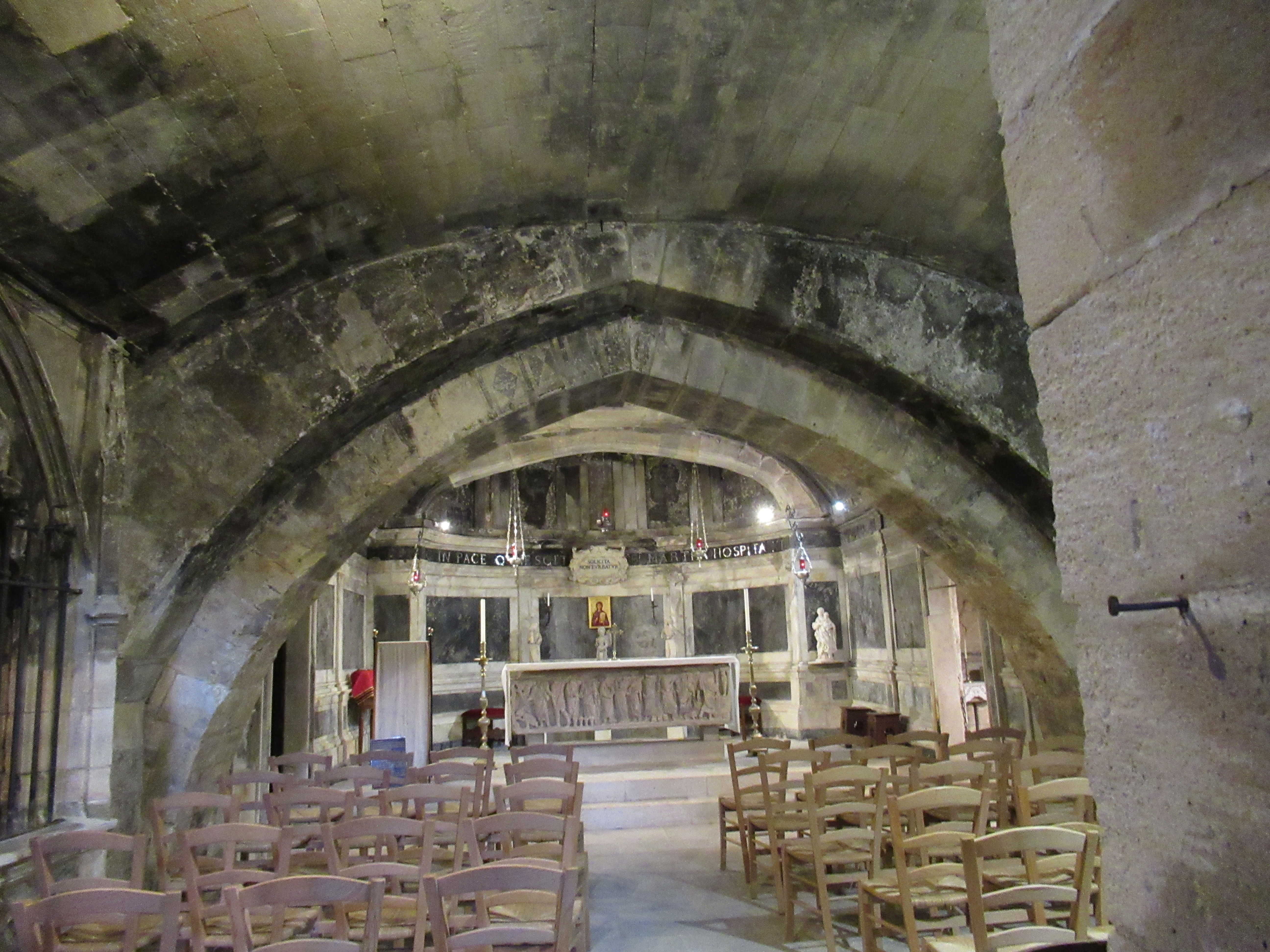 Here’s the crypt where Martha’s tomb and relics reside. (And can I just say that I was the only person in the place when I descended. Actually, I might’ve been the only person in Tarascon today; certainly, the only tourist). I will own up and say I took this snap with my arms between bars.