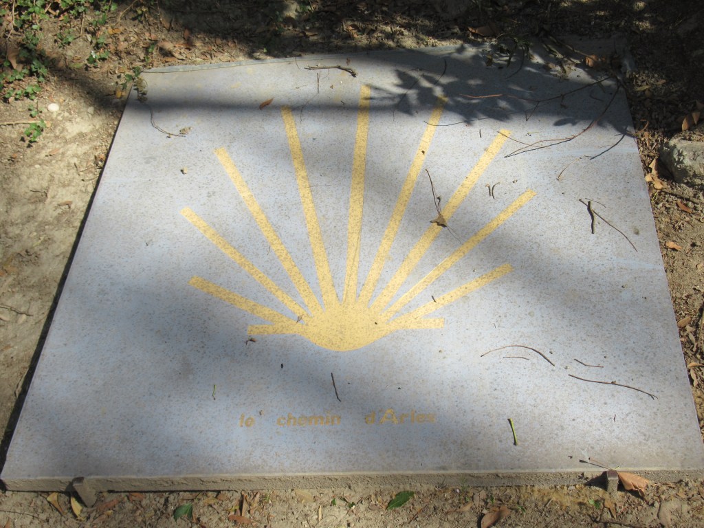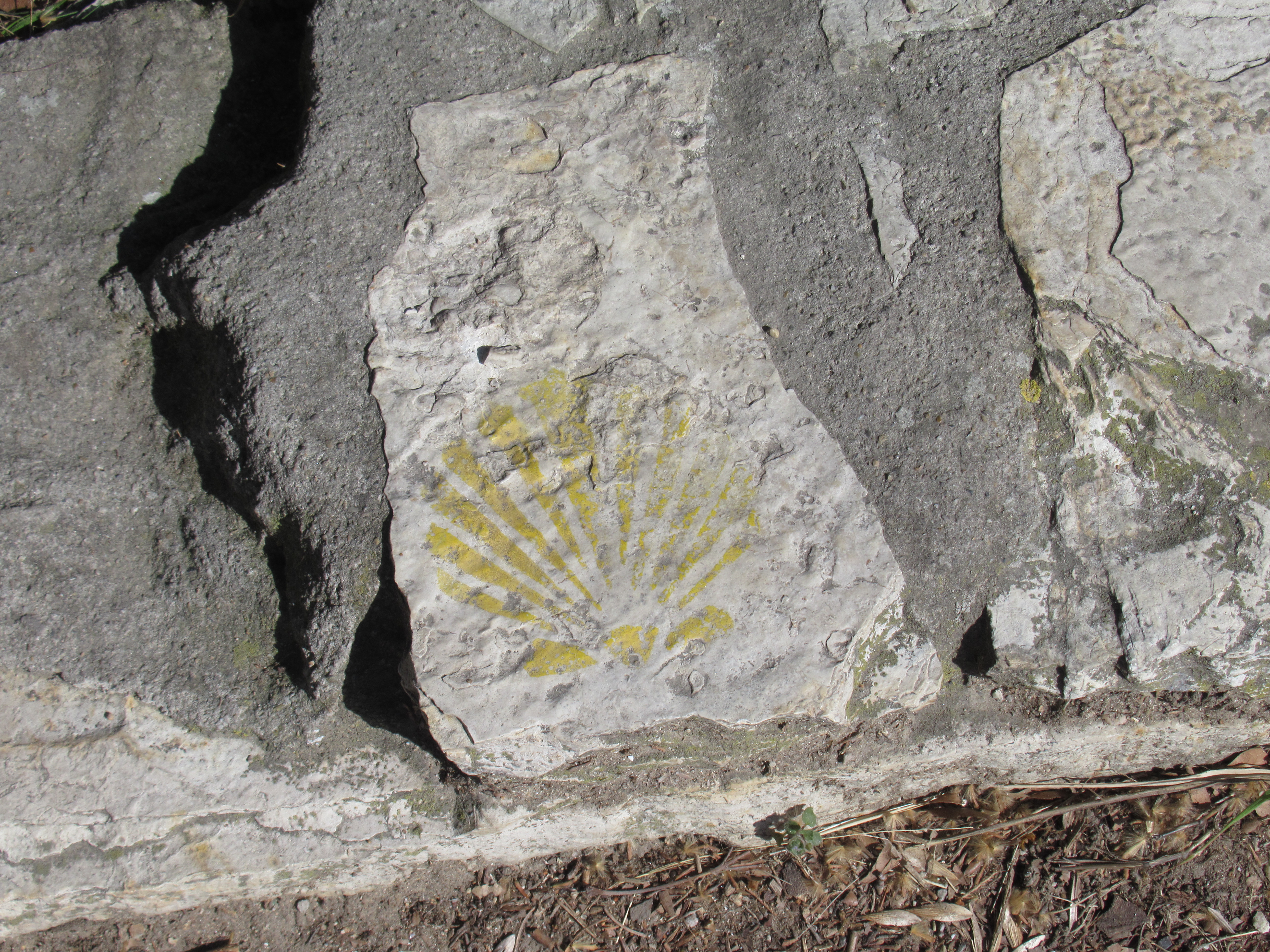 Before continuing with the tour, I just wanted to point out that if you don’t rush into the necropolis, you can spot signs that show this to be a stopping place for pilgrims taking the route from Rome to Santiago de Compostela. Obviously, these two illustrations have been constructed to commemorate the road …