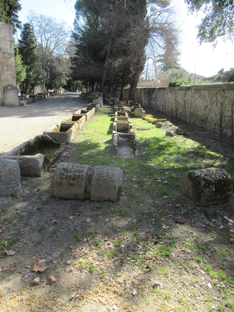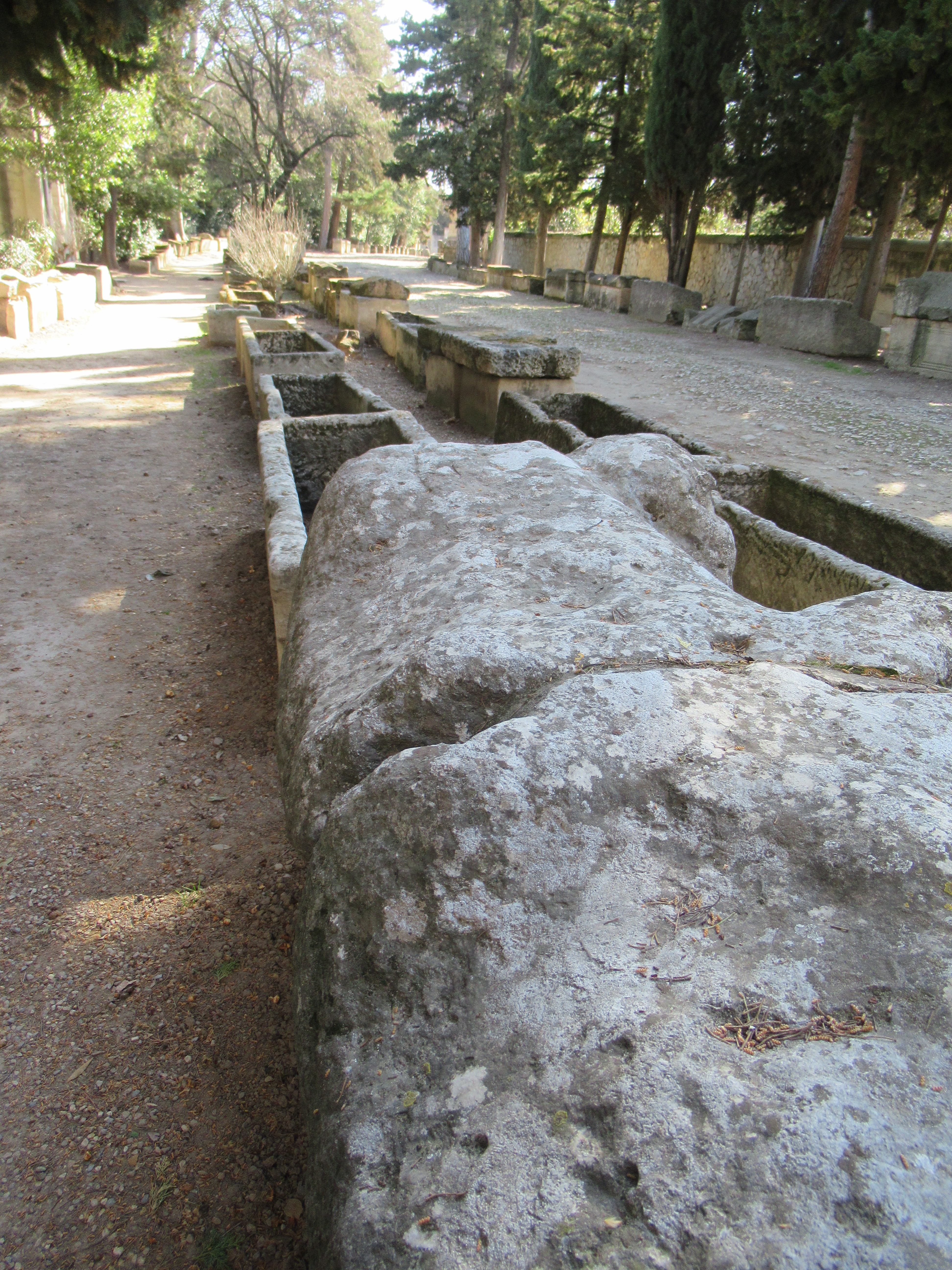 The Alyscamps is set outside the city walls of Arles because Roman burials were forbidden within. This meant that roads leading to towns and cities were often lined with tombs and mausoleums. It’s quite tedious to explain the origin of the word ‘Alyscamps’ but fun when you get there. Basically, it’s a provencal derivation of a Latin word of something else which, in the end, comes down to Elysian Fields which refers to afterlife. Still with me? It’s the same derivation as Champs Eylsees in Paris. You can learn a lot by reading a weasel.