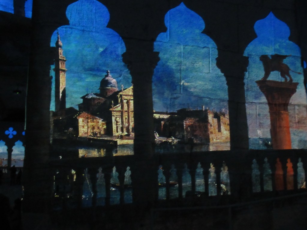Carriere is the French word for quarry. These, therefore, are the quarries of lights. In fact, they’re old limestone quarries just below the ancient village of Les Baux de Provence. At first, 1977, this unique place was known as The Cathedral of Images. Each year, an immersive artistic experience, comprising projections of giant images onto the quarry walls, accompanied by a range of classical and choral music, takes place within. And each year, the theme changes. Currently, it’s Venice.