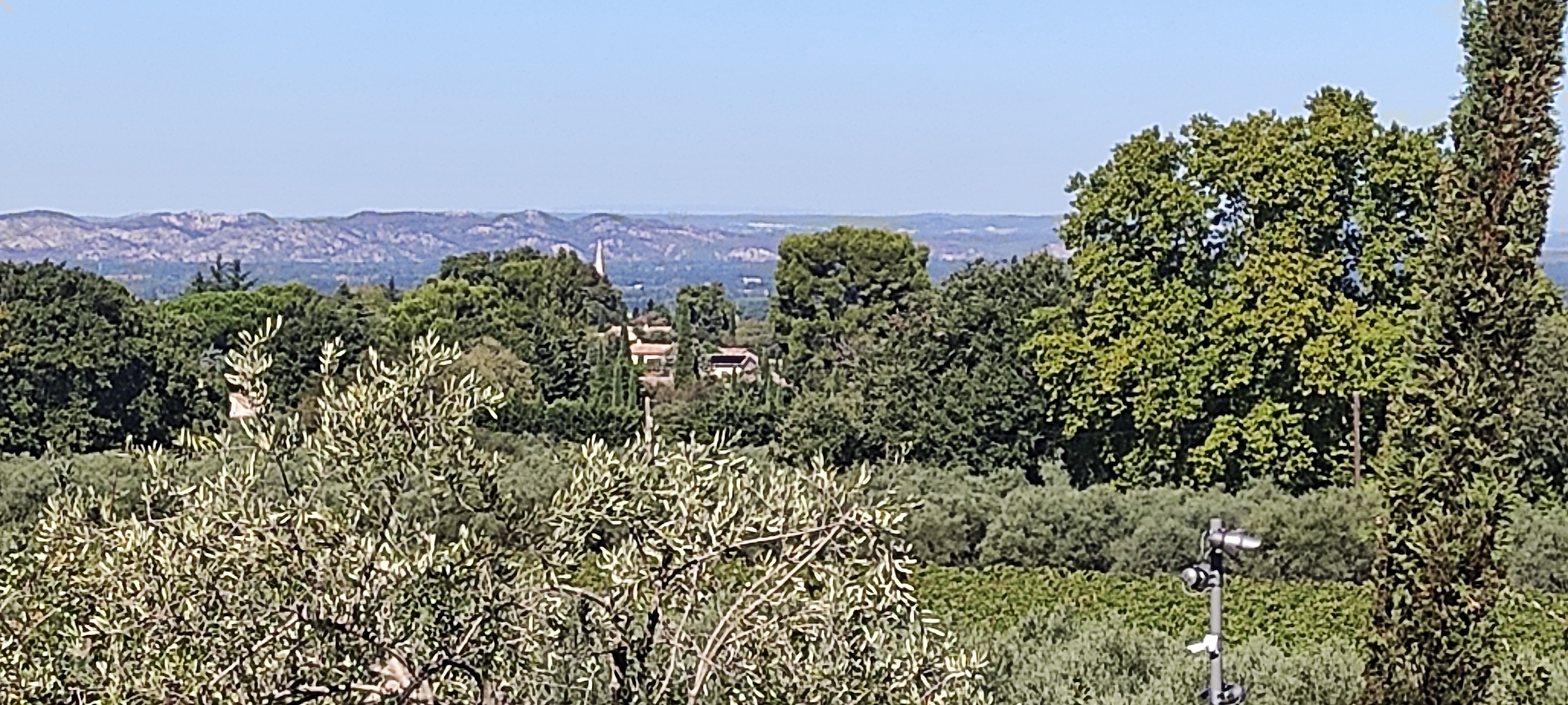At the top of the blog is a picture of a donkey in the olive groves which I took more years ago than I can remember. Today I took the opposite way, through other olive trees to catch a different perspective of St Paul Mausole where Van Gogh was holed up after the debacle down in Arles. The other snap shows part of the little mountains of Les Alpilles that he was so fond of capturing.