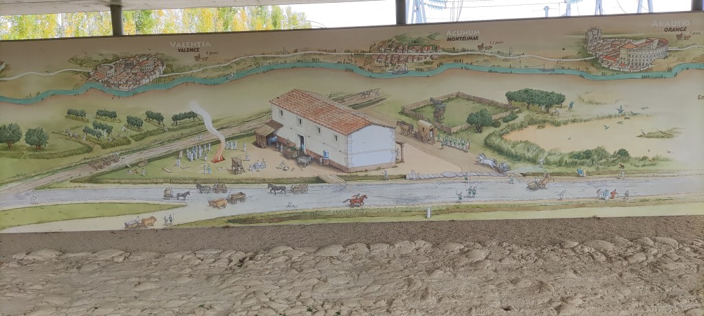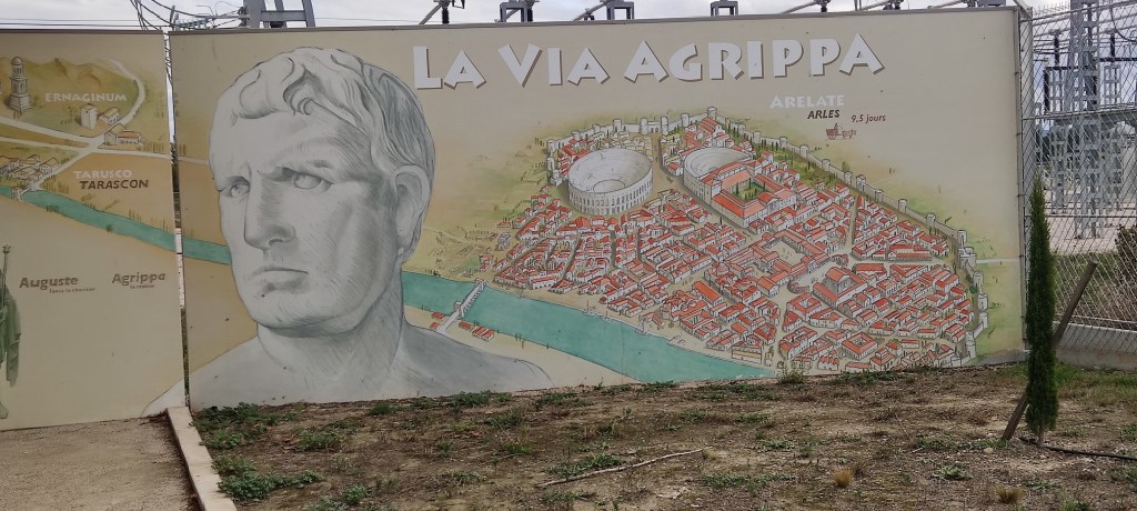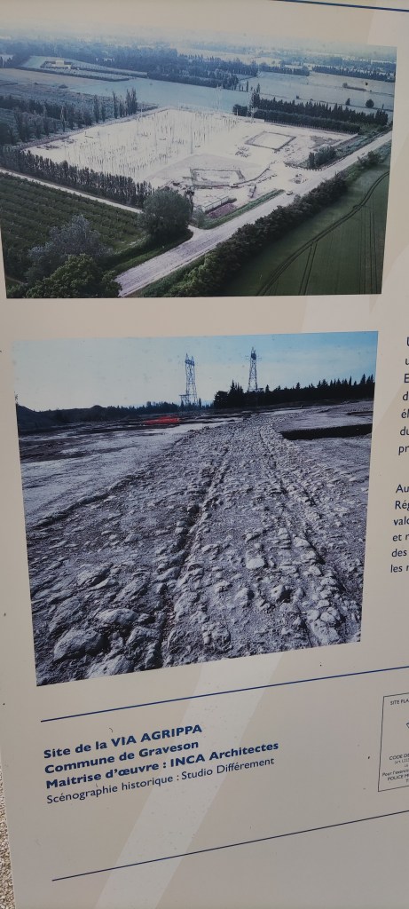 La Via Agrippa comprised around 13,000 miles of roads built by Marcus Vipsavius Agrippa, throughout what we call France today, to help subjugate those tricky Gauls. The strategic hub was Lugdunum (Lyons) from whence the routes emanated in four directions. Our particular road was the one which took the Romans down to Arles where they could take their boats from the mouth of the River Rhone into the wide open sea. Graveson would have been a relay station where horses could be exchanged and people could refresh themselves.