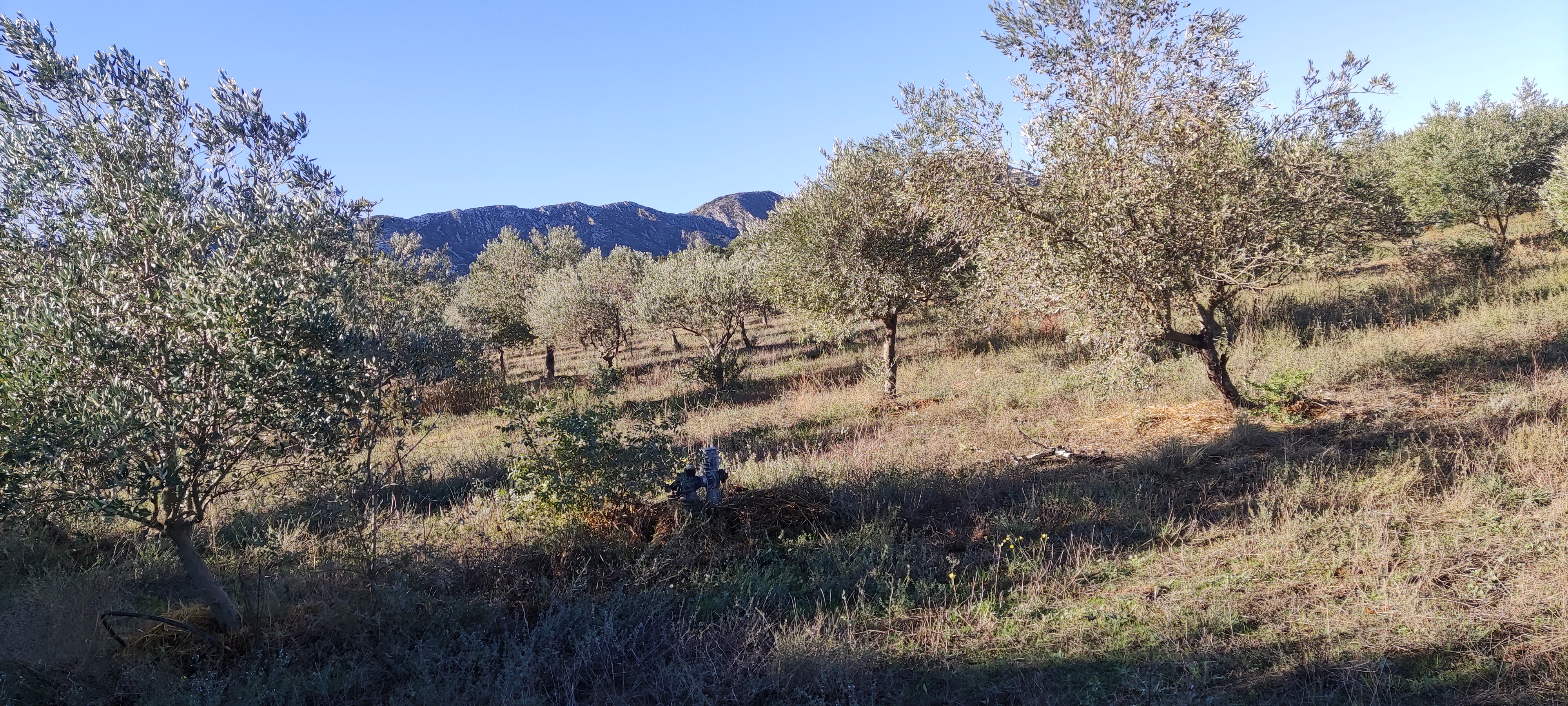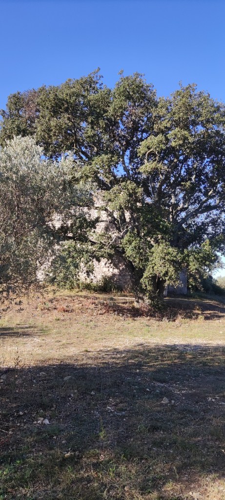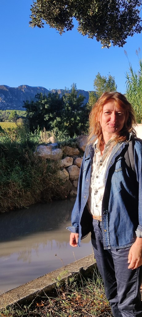 Now, we’re wandering through ancient olives, always with the little mountains in the background. In another weasel, I wrote about Jean Moulin who parachuted into the Alpilles here in order to try to contain the various and disparate groups of men and women fighting in the Resistance during WW2; and who was tortured and murdered for his troubles. Today, whilst turmoil continues in the wider world, it’s hard to reconcile those times with the peacefulness here, broken ony by the noise of a solitary tractor trimming the overgrowth on the side of the canal.