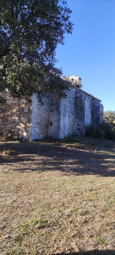 Eventually, we arrive at the Chapel of Romanin which, despite being rather large, is completely hidden from roads, tracks and paths; we’ve had to take an unmarked path across the olive groves to reach our destination. The base was built in the twelfth century and the rest of it has been added to and dismantled over the years. We can’t gain entry but, brushing the foliage aside, it’s possible to see the interior which, in the French tradition, is covered in graffiti. Why do they always do that I ask? Anais has no answer but explains that this is why all the beautiful chapels are rarely open to the public. It makes me sad.