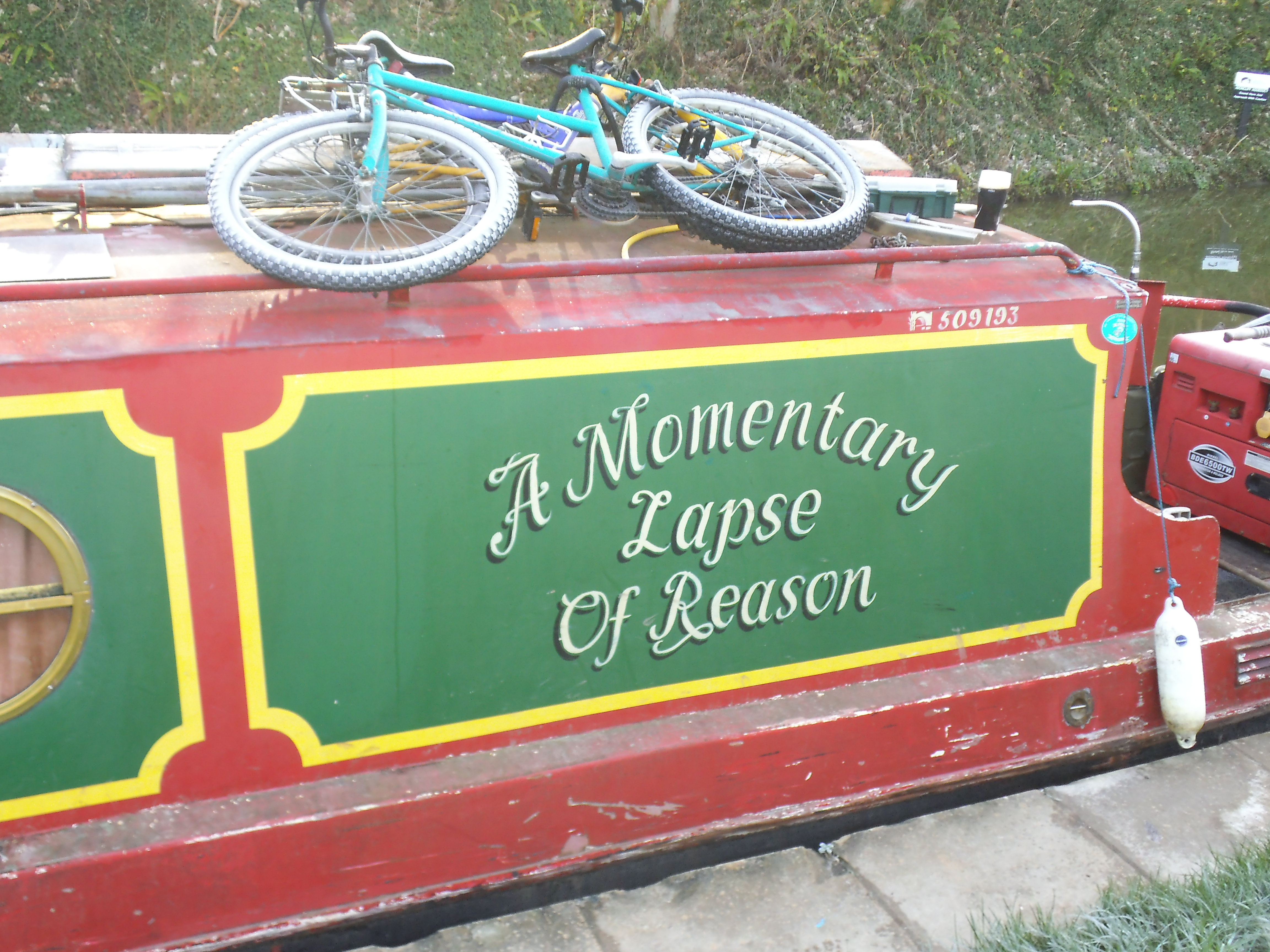 On the way back, I stop at another soaked bench to enjoy a seasonal sausage roll that I find at the bottom of my rucksack and have a chat with Jim. Jim’s boat is crammed with all sorts of unexpected paraphernalia that must make things tricky for those arranging his home and contents insurance.